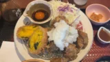 大戸屋ランチは下味を付けた鶏の唐揚げとサクサクの男爵いもコロッケ、目玉焼きがのった、定評ある大戸屋のロングランメニューです。サラダとコロッケは同じお皿に盛られていますが、コロッケは金属の網で少し持ち上げていますので、サラダから出てくる水でビチョビチョになることなく、サクッとした歯触りのままで食べることが出来ます。