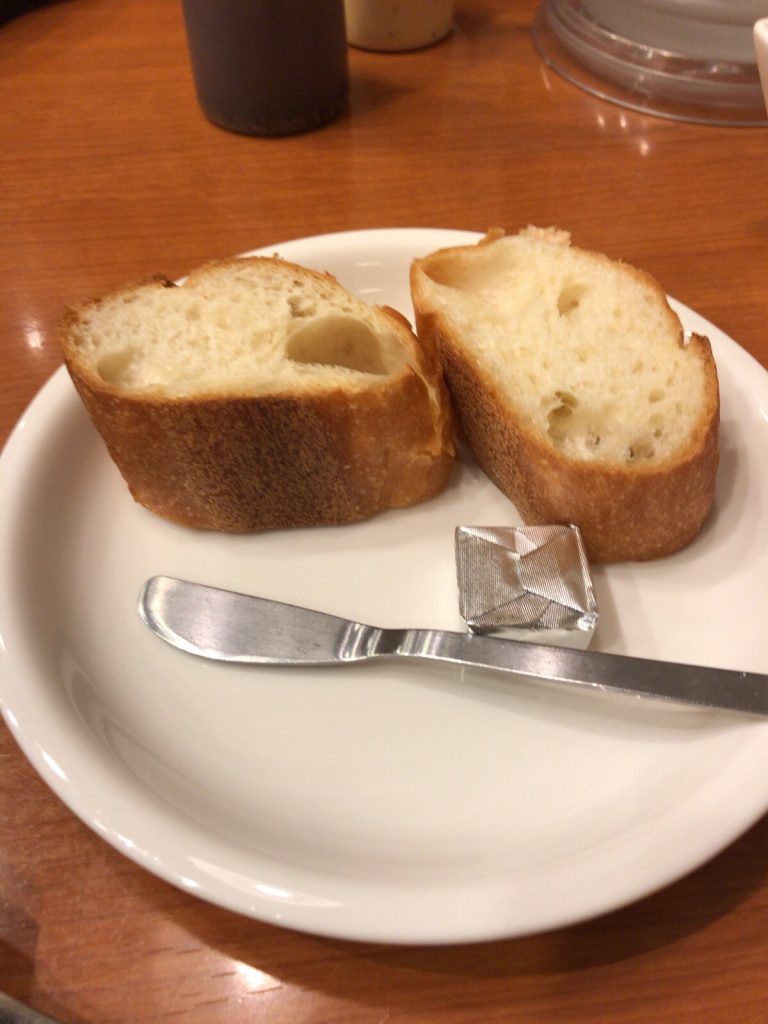 パンの方はフランスパンでした。パンもお代わりができますが、今回はお代わりはしませんでした。