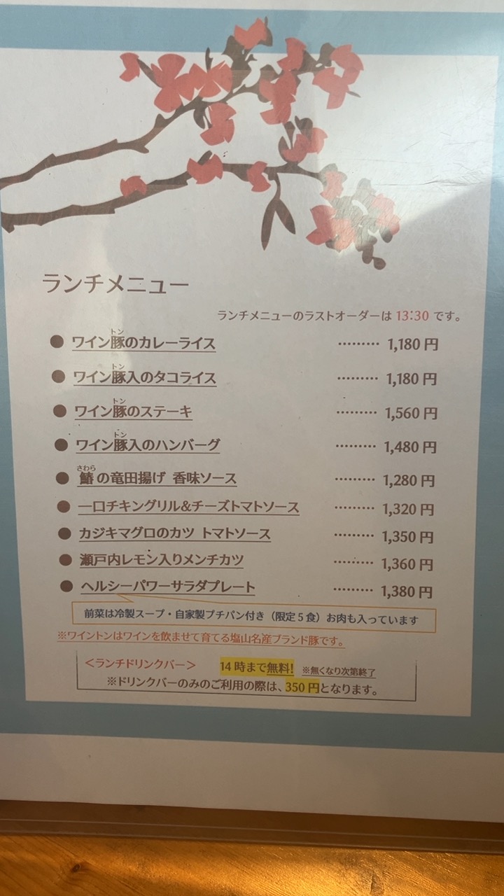 こちらがランチメニューなります。