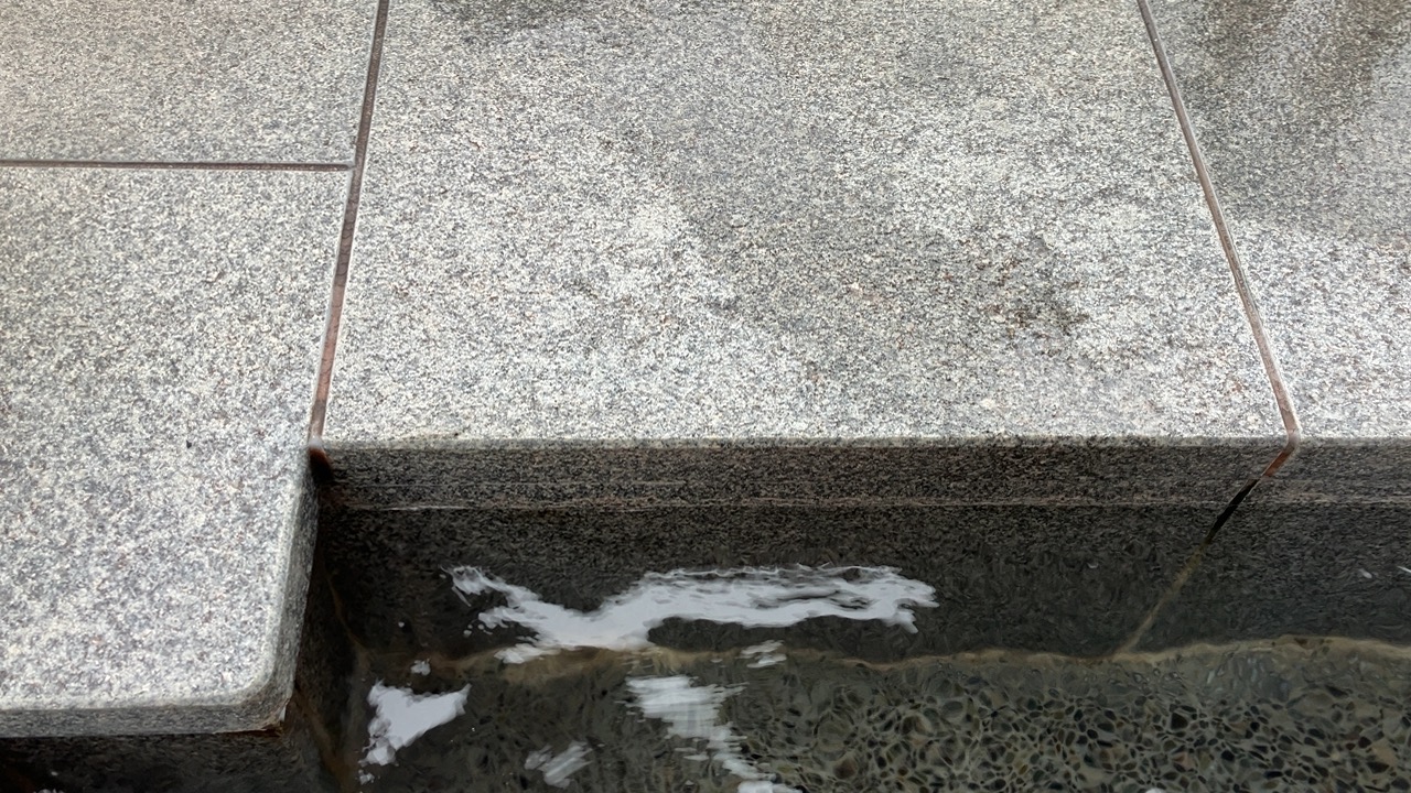 足湯のお湯は無色透明、とても柔らかい泉質でした。よく身体が温まります。