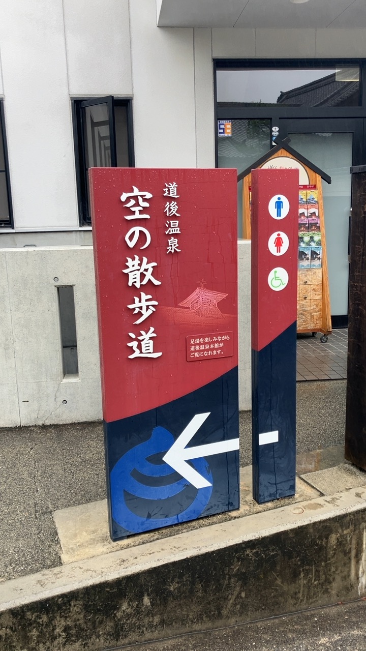 二泊三日で愛媛に旅行に行った際、三日目に松山市内の観光をしました。最初に目指したのは道後温泉本館です。伊予市のホテルからクルマで行きました。ナビには道後温泉本館を目的地に設定したのですが、駐車場の場所がよく分かりません。道後温泉本館が正面に見えてきた右手側のお城の上に登る坂道が駐車場への道になっていました。少し分かりにくいです。駐車場でクルマを降りて道後温泉本館に向かうと直ぐに空の散歩道という場所がありました。