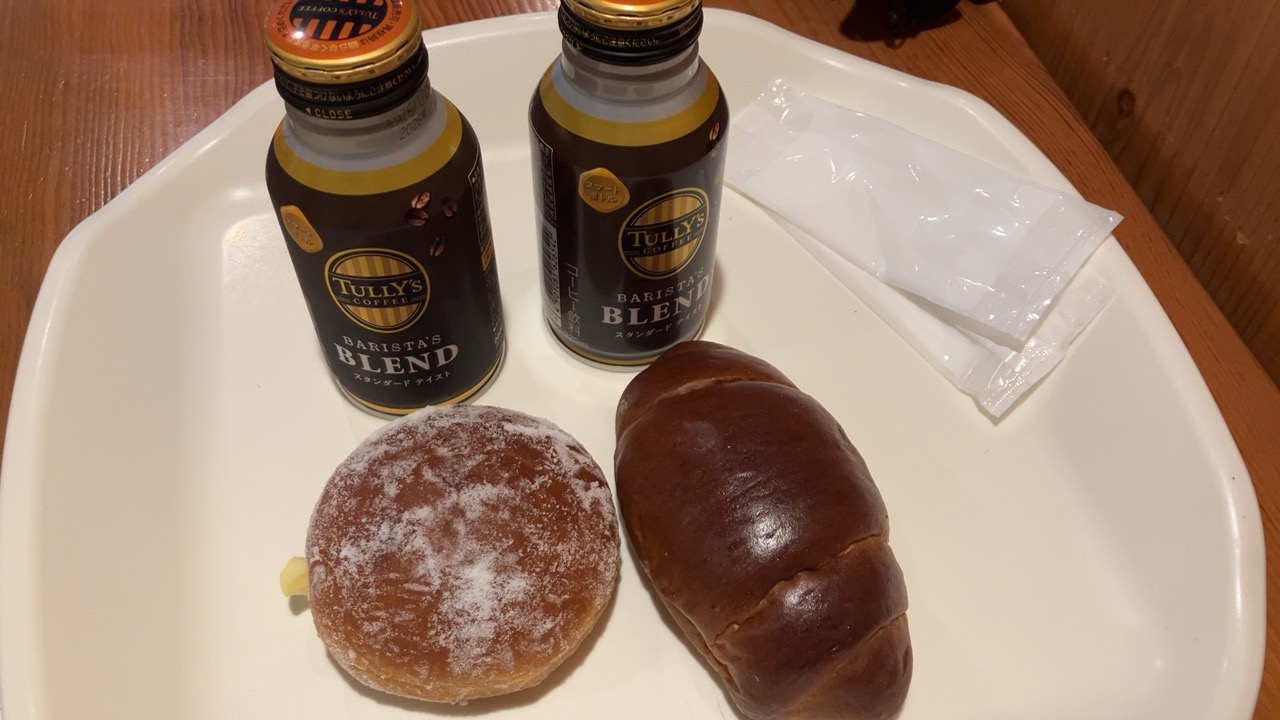 たくさんのパンが並んでいて、どれを食べるか迷ってしまいます。今回はクリームパンと黒糖ロールを購入しました。イートインがありますので店内で食べることができます。コーヒーは缶コーヒーを購入するシステムです。