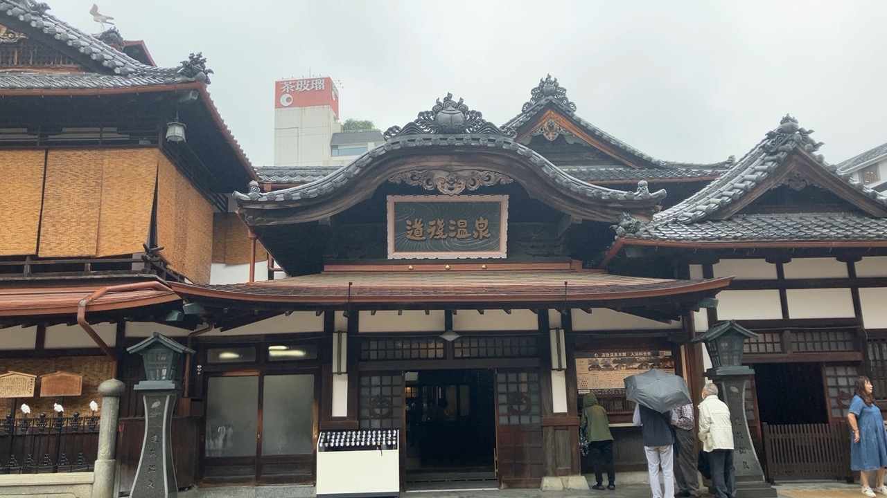 愛媛でニュースを見ていたときに、6月1日に夏の暑さを凌ぐために全館で簾をかけたという情報を紹介していました。道後温泉本館は改築工事の際に全館冷房を完備したので、そこまで簾をかける必要はなくなったのですが、やはり夏の情緒を残すために今でも簾をかけているそうです。