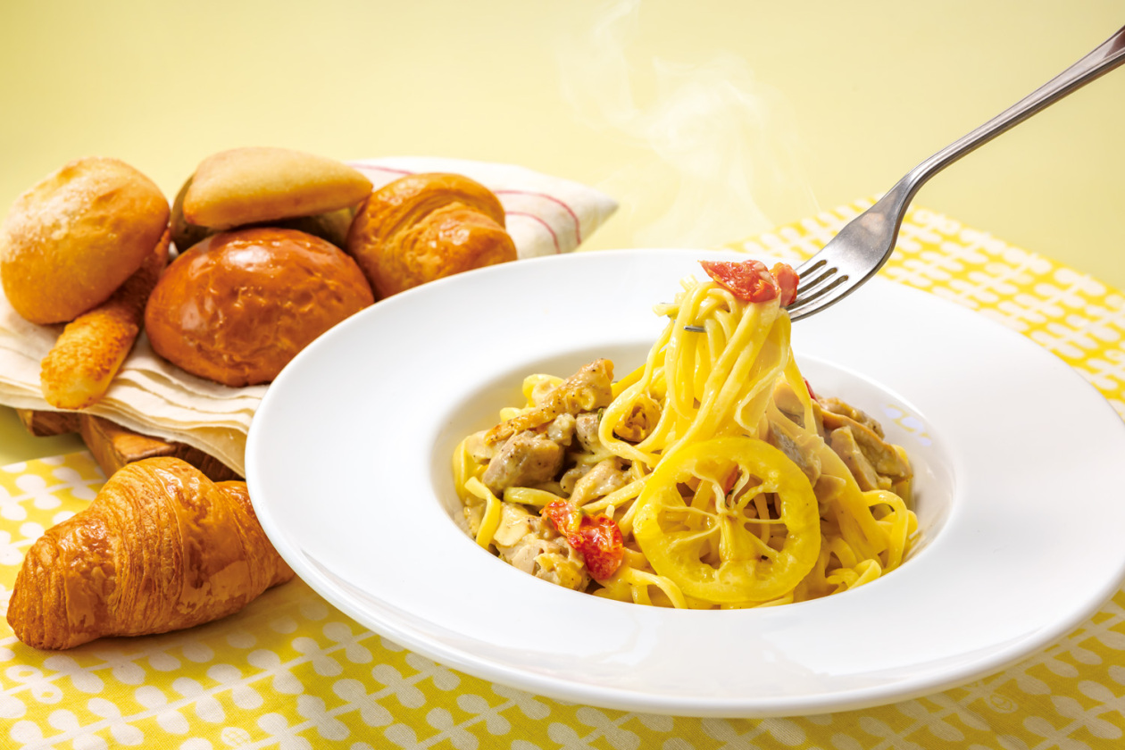 今回は、夏フェア対象商品のスパイス香るグリルチキンのレモンクリームパスタ パン食べ放題付きを注文しました。