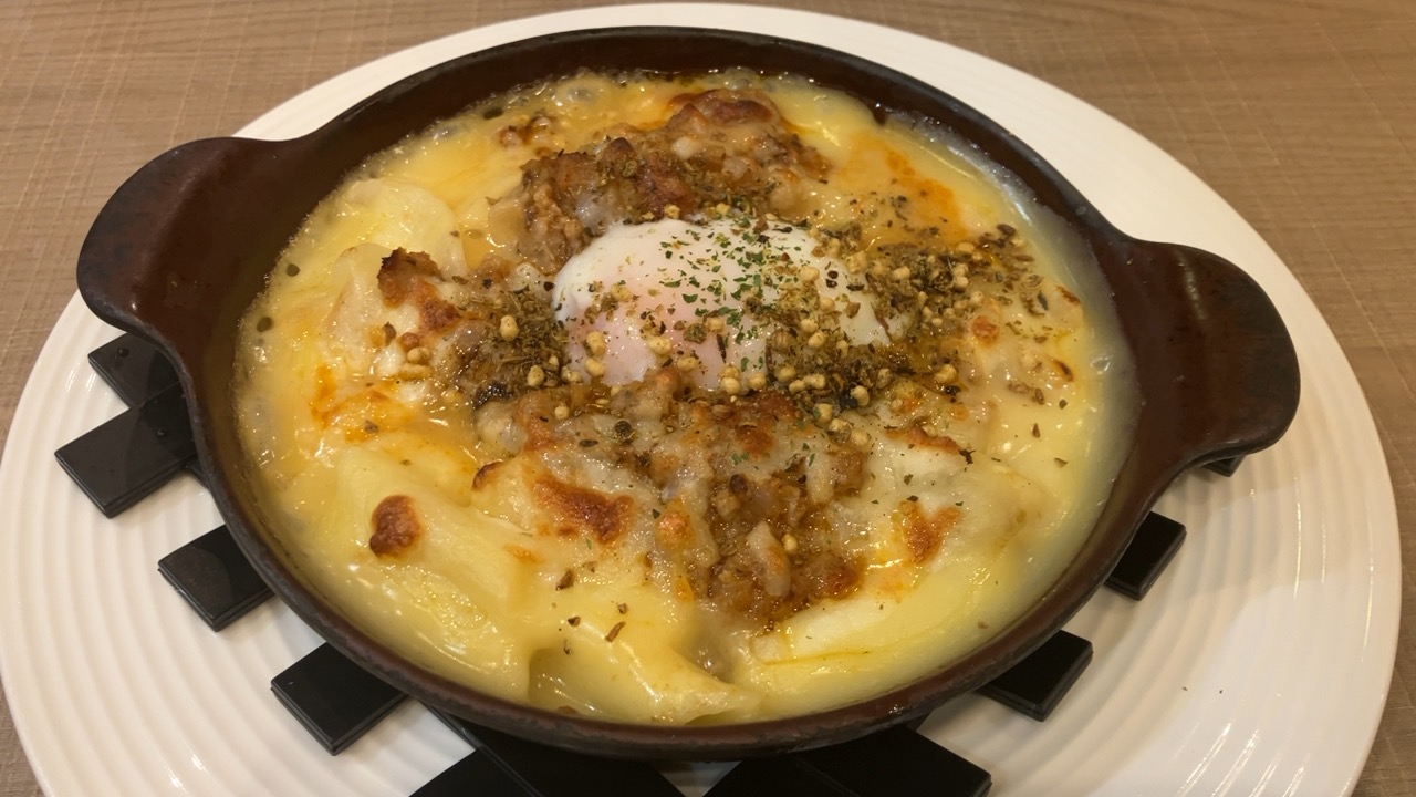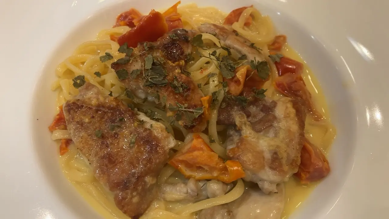 スパイス香るグリルチキンのレモンクリームパスタが運ばれてきました。