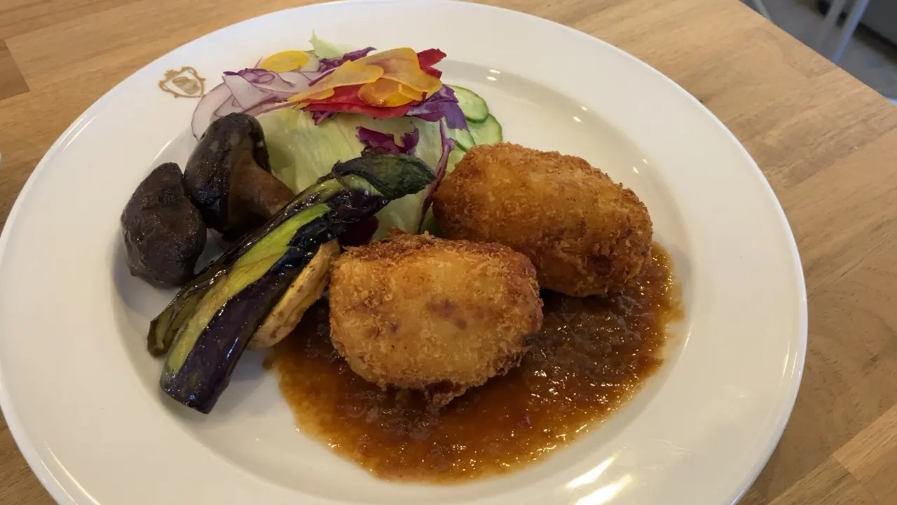 そうこうするうちに、手作りコロッケセットが運ばれてきました。