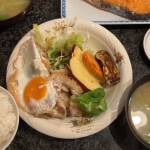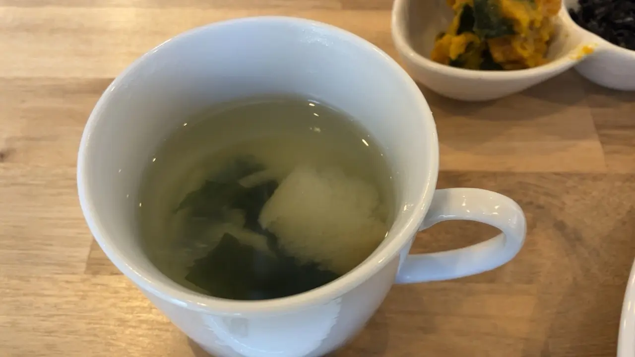 ご飯、前菜小鉢、メインディッシュ、スープのセットです。