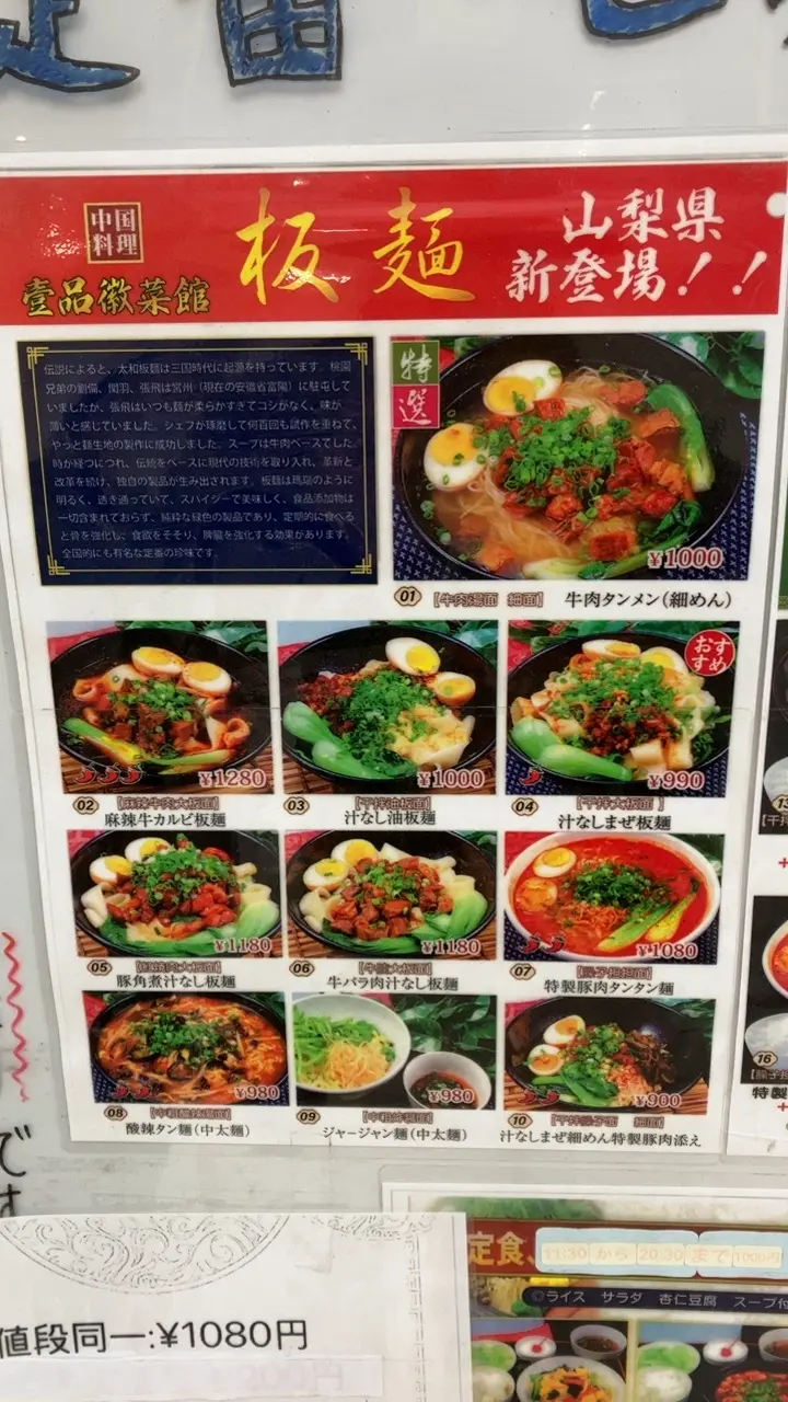 こちらは麺類です。板麺というのですね。このお店の板麺は生地から手作りしています。