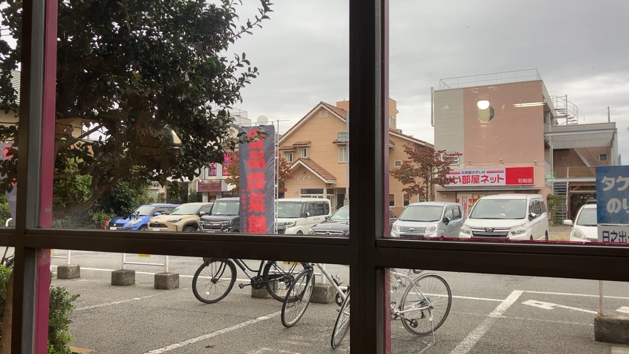 オープンしてから間もない石笛の湯で源泉かけ流しの日帰り温泉を楽しんだあと、お腹がすいたので、石和温泉駅前に行ってみました。こちらにはイオン石和店があります。1990年にニチイ石和店として開店、1997年に石和サティ、2011年にイオン石和店と変遷しています。こちらの駐車場にクルマを停めて、イオン含め周辺を散策してみました。こちらの駐車場は3時間までは無料、以降は有料(30分200円、24時間最大400 円)という料金体系です。