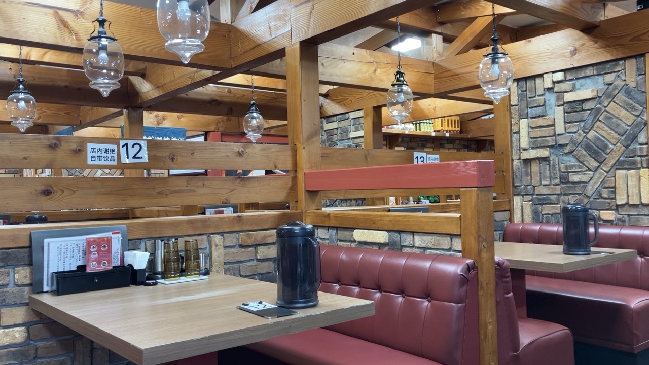 なんとなくウッディな感じなのが中華料理店らしくないです。ただ、掲示物はすべて中華料理店を思わせるものでした。