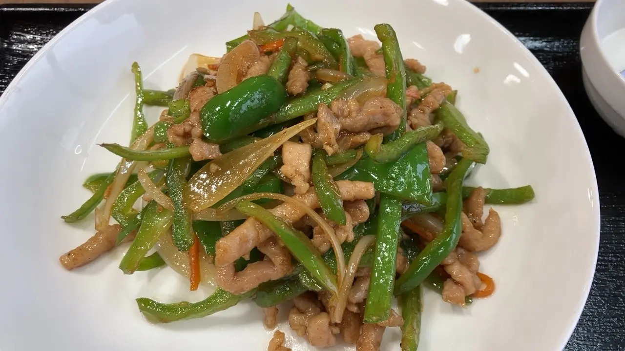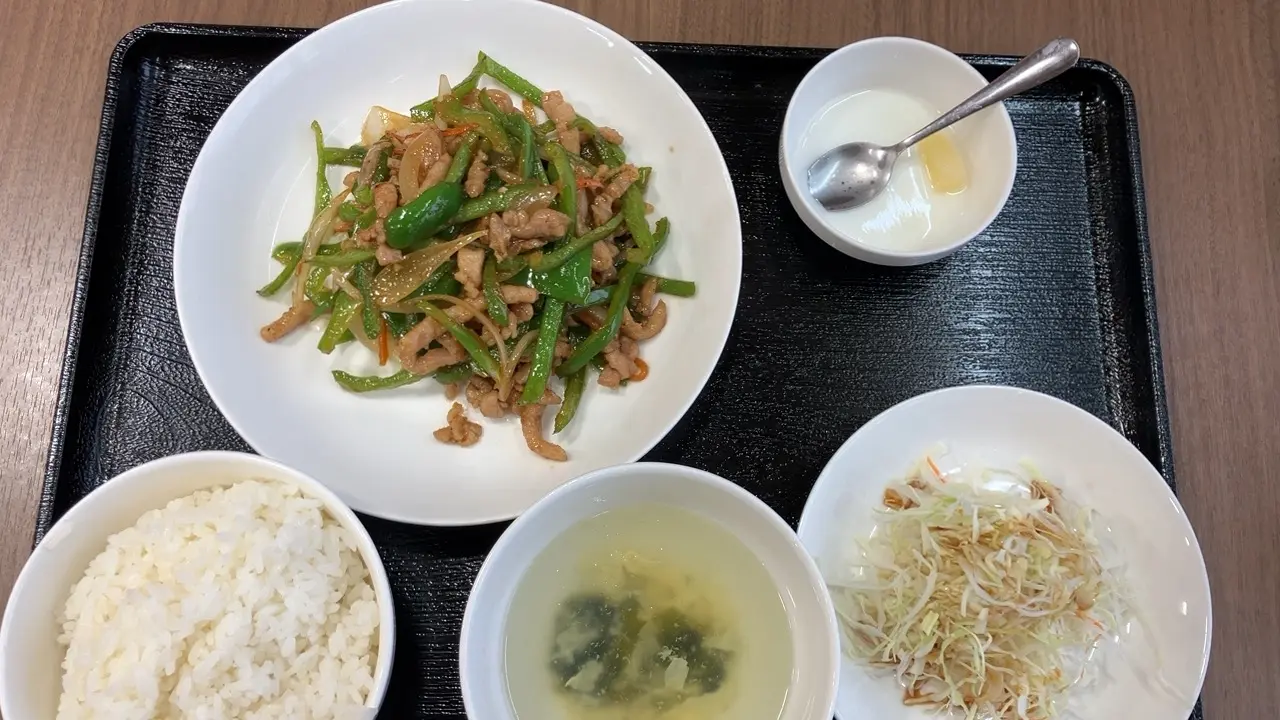 回鍋肉にしようか青椒肉絲にしようか悩んだのですが、今回は青椒肉絲の定食にしました。