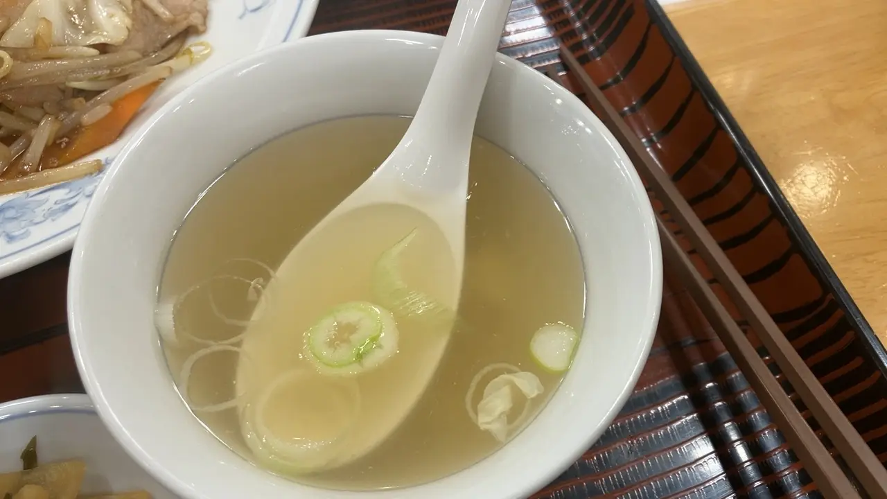 スープは優しい味がします。ネギが散らしてあるだけのシンプルなスープです。