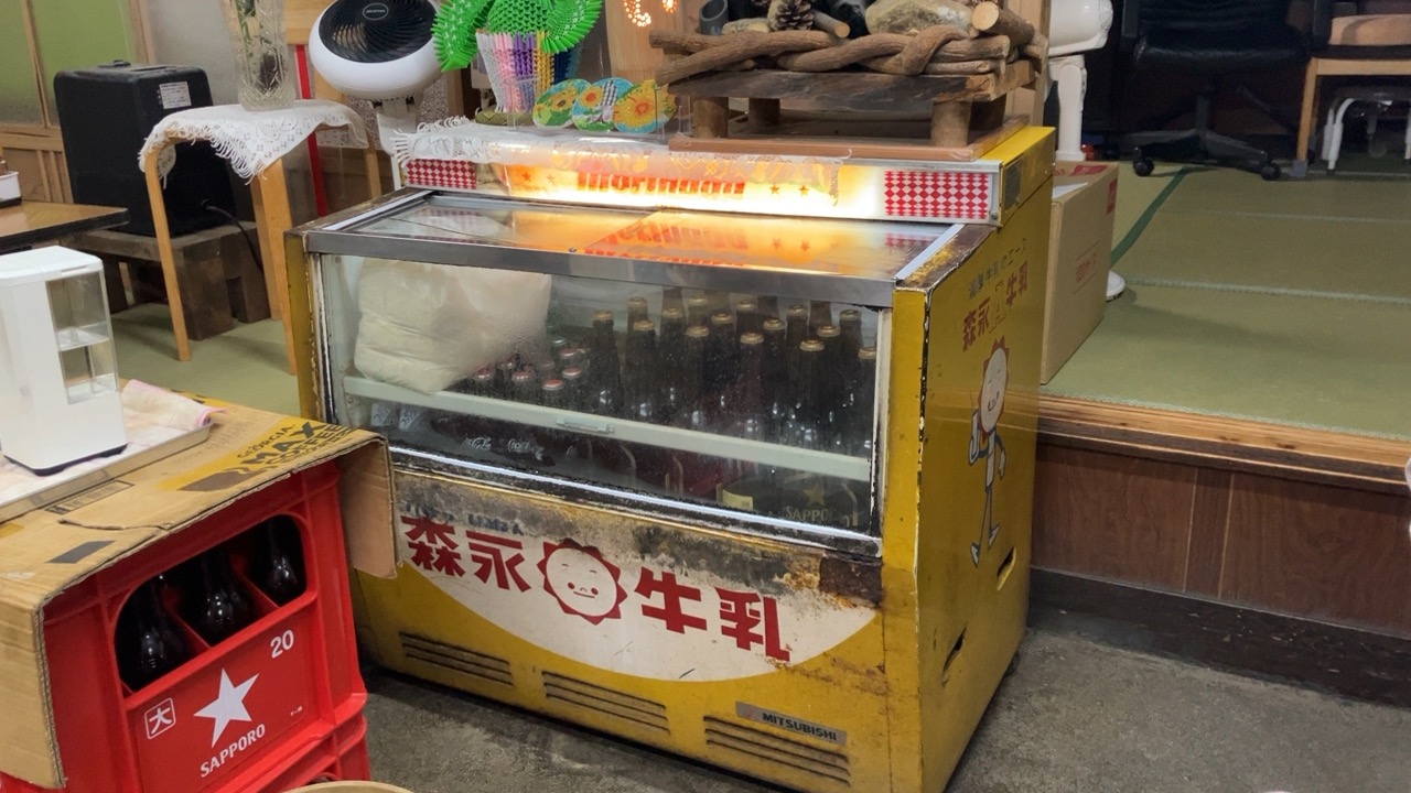 ラーメンを作ってもらっている間、店内を見渡してみました。こちらのビールが入っている冷蔵ケースは、森永乳業のもののようですが、とても古いのではないでしょうか。昭和50年代という雰囲気が漂っています。