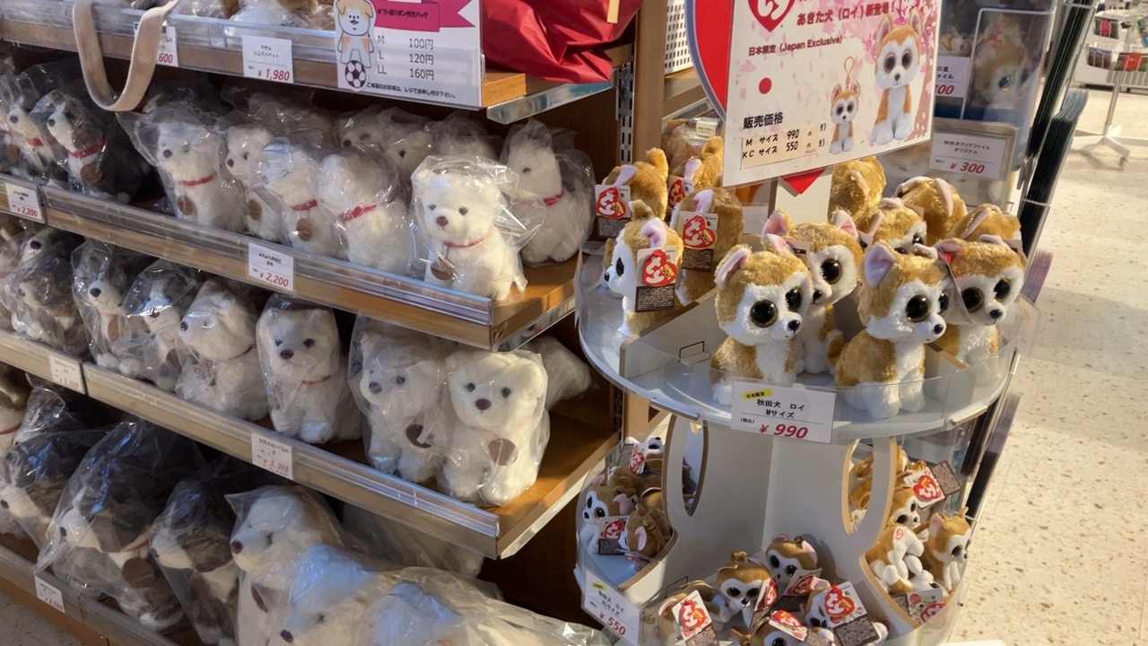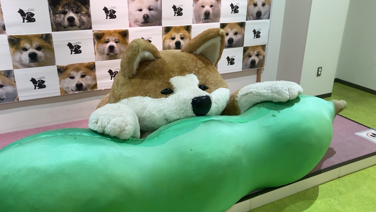 まずは秋田犬の里の建物の中から見学をしました。入館無料です。まずは大きな秋田犬の縫いぐるみがお出迎えをしてくれました。