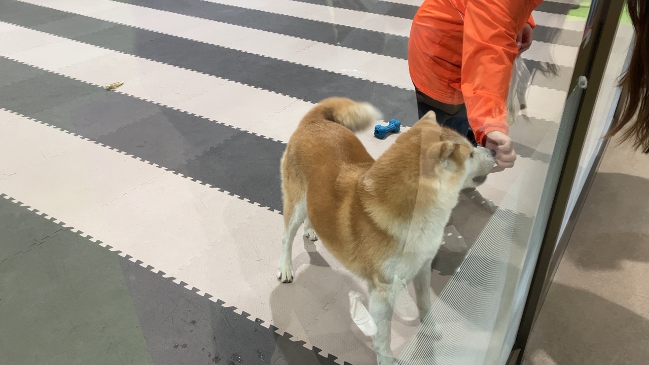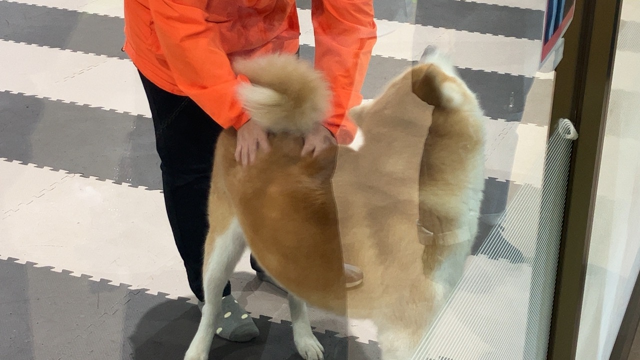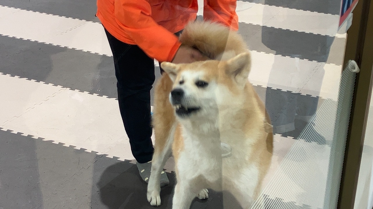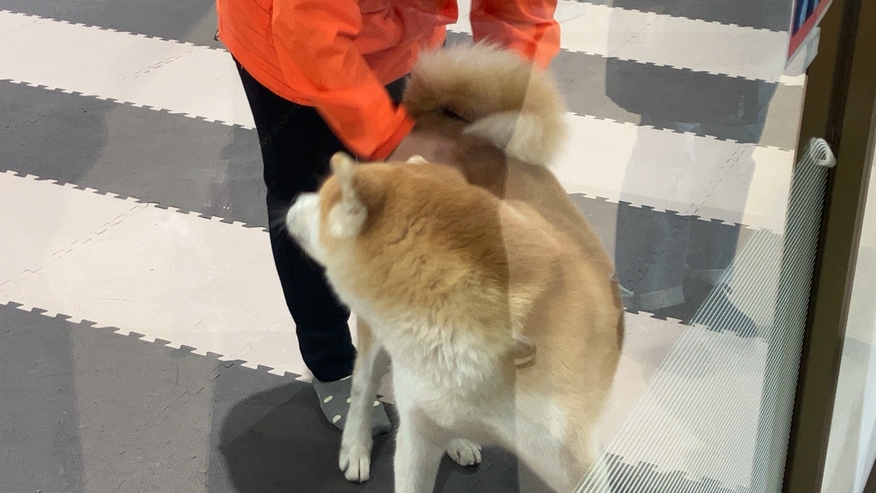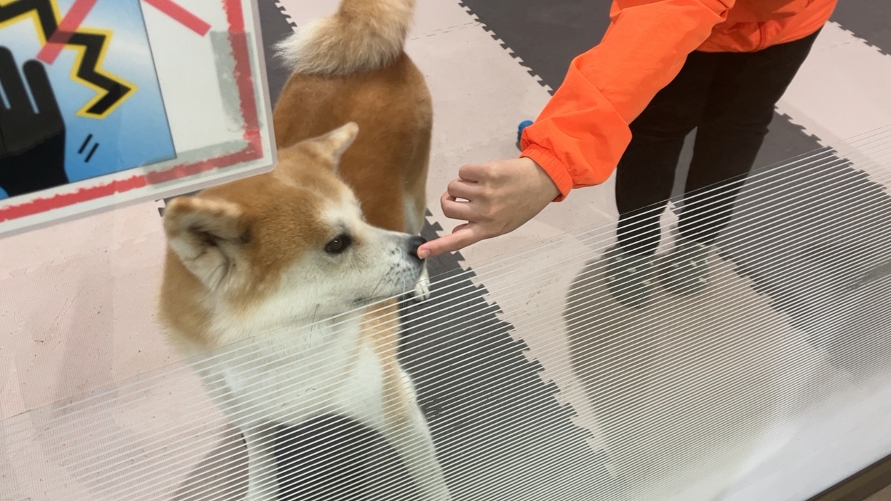 ガラス越しに秋田犬を観ることができます。職員さんが窓側に秋田犬が顔を向けるようにしてくれます。無邪気に職員さんと戯れている秋田犬は本当に可愛らしいです。