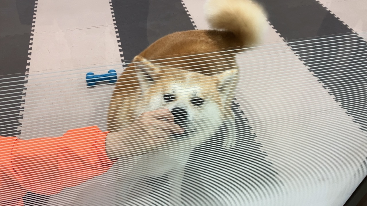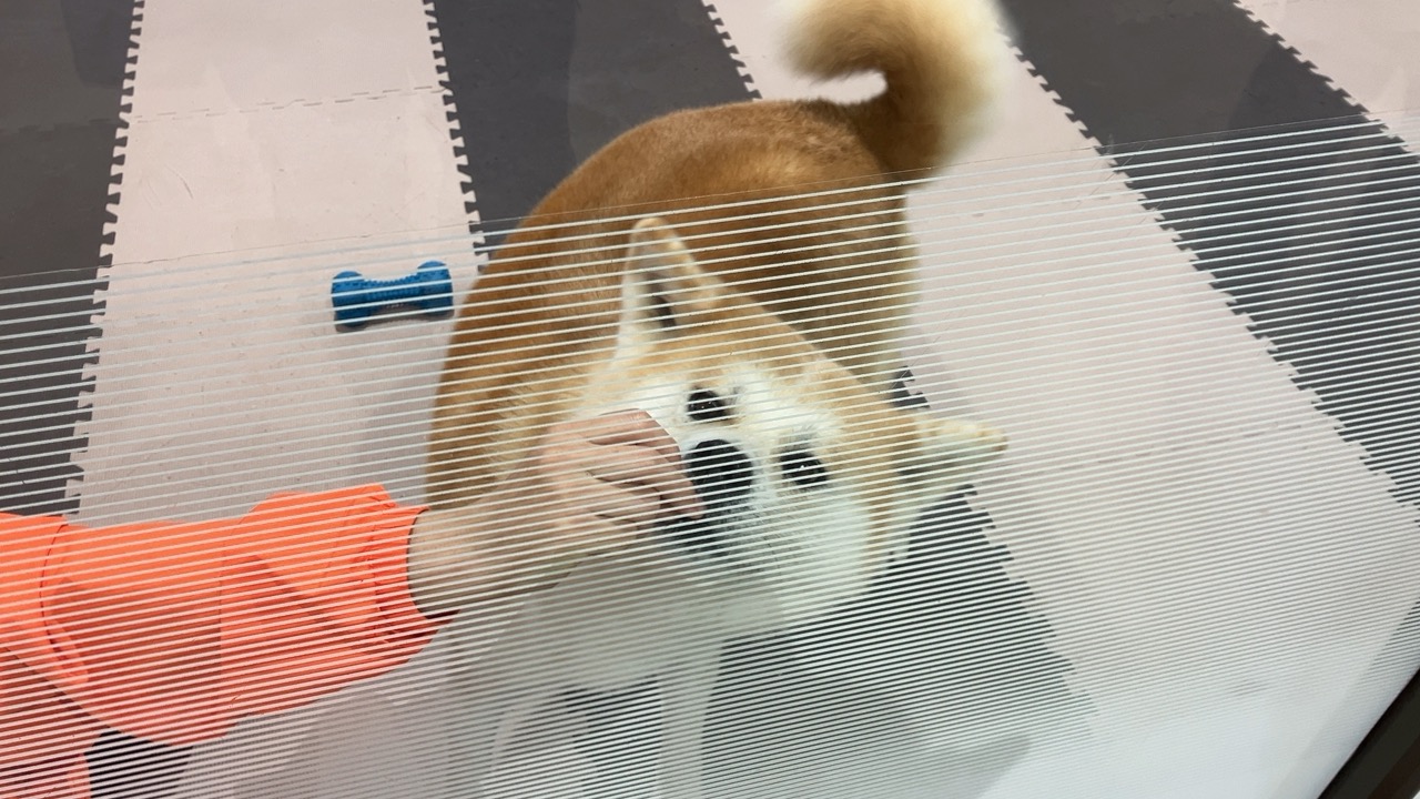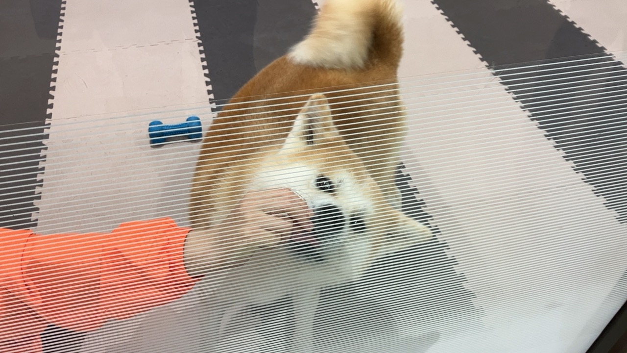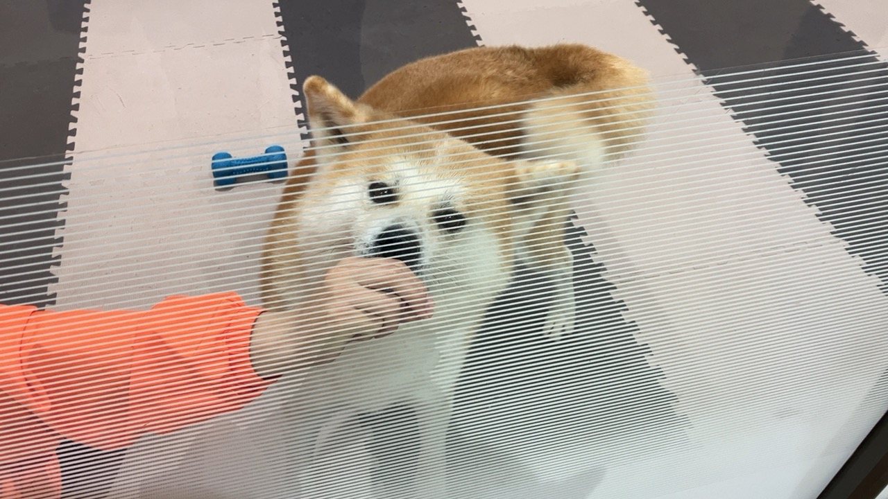 ガラス越しに秋田犬を観ることができます。職員さんが窓側に秋田犬が顔を向けるようにしてくれます。無邪気に職員さんと戯れている秋田犬は本当に可愛らしいです。
