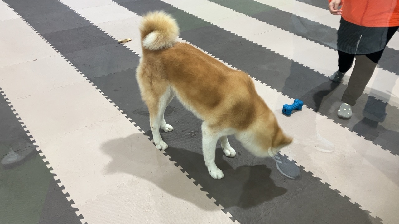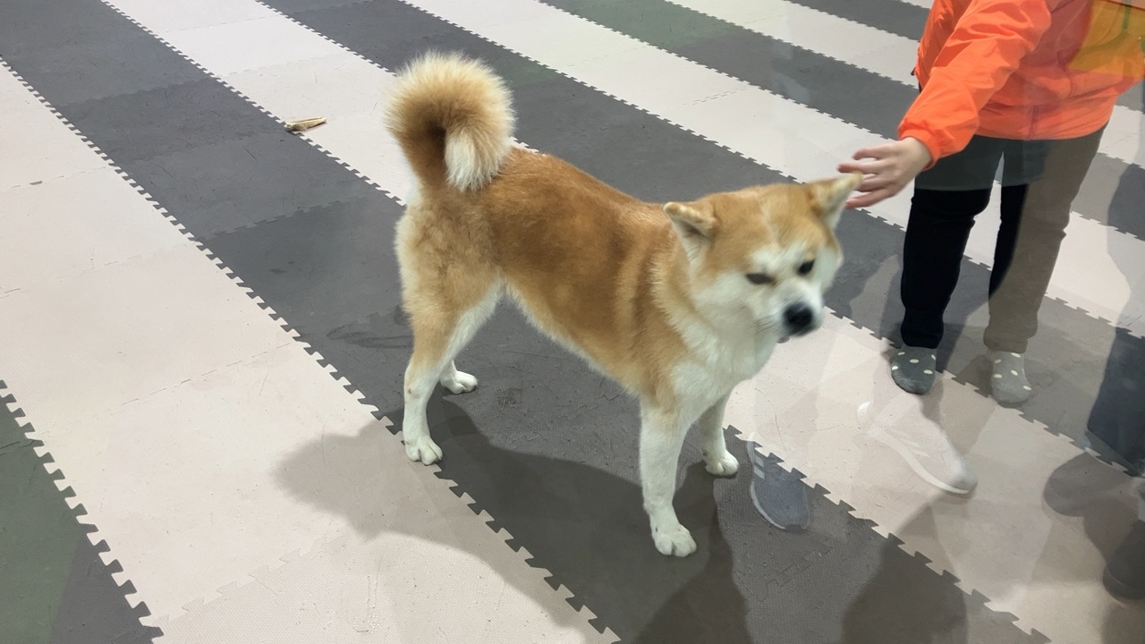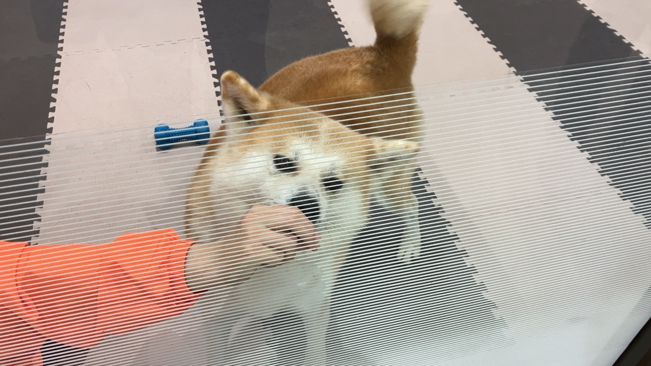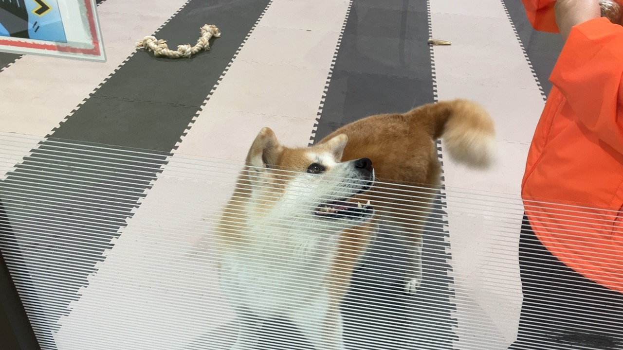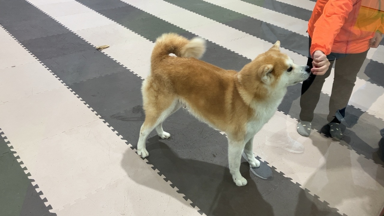 ガラス越しに秋田犬を観ることができます。職員さんが窓側に秋田犬が顔を向けるようにしてくれます。無邪気に職員さんと戯れている秋田犬は本当に可愛らしいです。