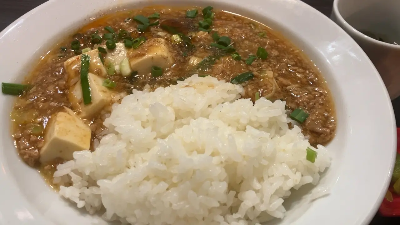 今回は900円の麻婆豆腐ごはん(スープ付き)を注文しました。15分ほどで運ばれてきました。こちらになります。