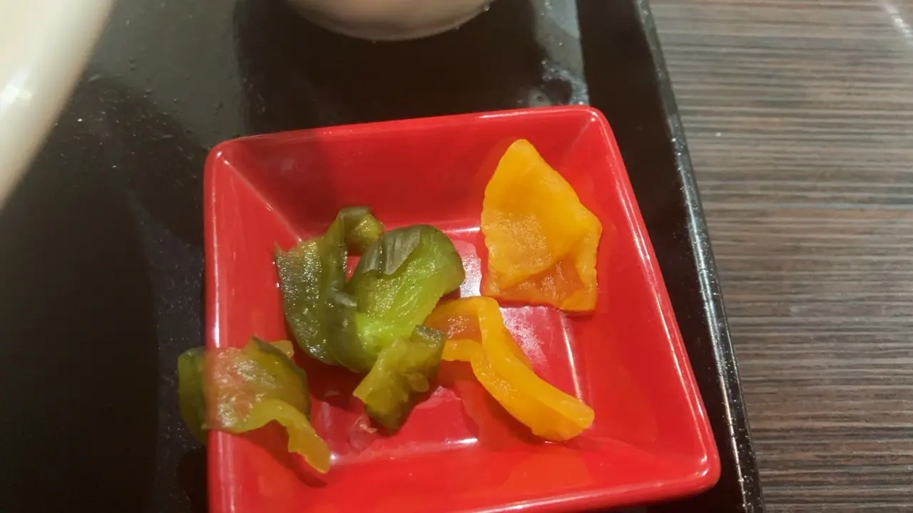 お新香はきゅうちゃん的なキュウリの漬物と沢庵です。残念ながら、いぶりがっこではありませんでした。