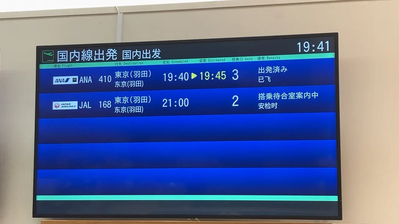 羽田へと出発です。定刻通りに出発してくれました。羽田空港着は午後10時過ぎです。