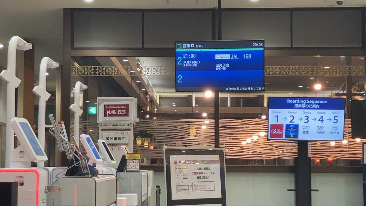 秋田空港を夜9時に飛び立つ東京羽田空港行のJAL168便に乗るために秋田空港へと行きました。レンタカー会社の方に送ってもらって、午後6時45分頃に到着しました。