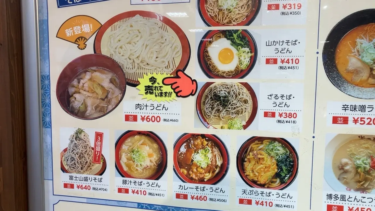 こちらは麺類のメニューなります。