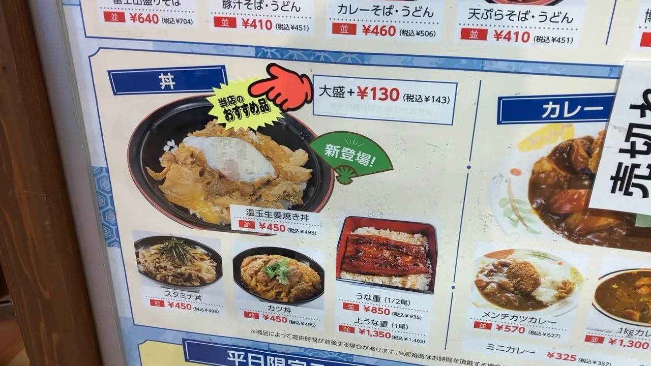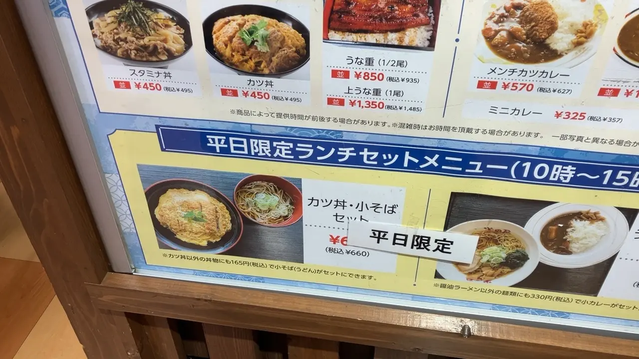 こちらは丼もののメニューです。うな重が850円で販売されているのは、とても安いと思いました。