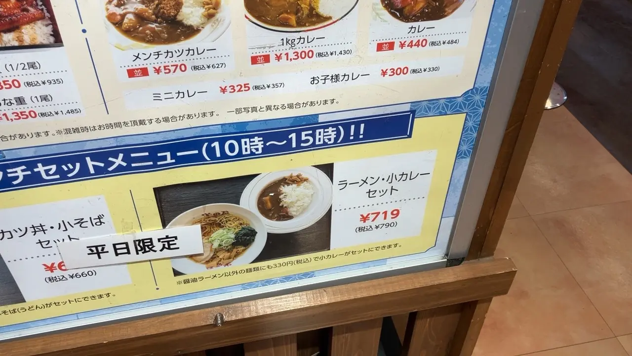 例えば、ラーメンとカレーのセットが税抜719円です。