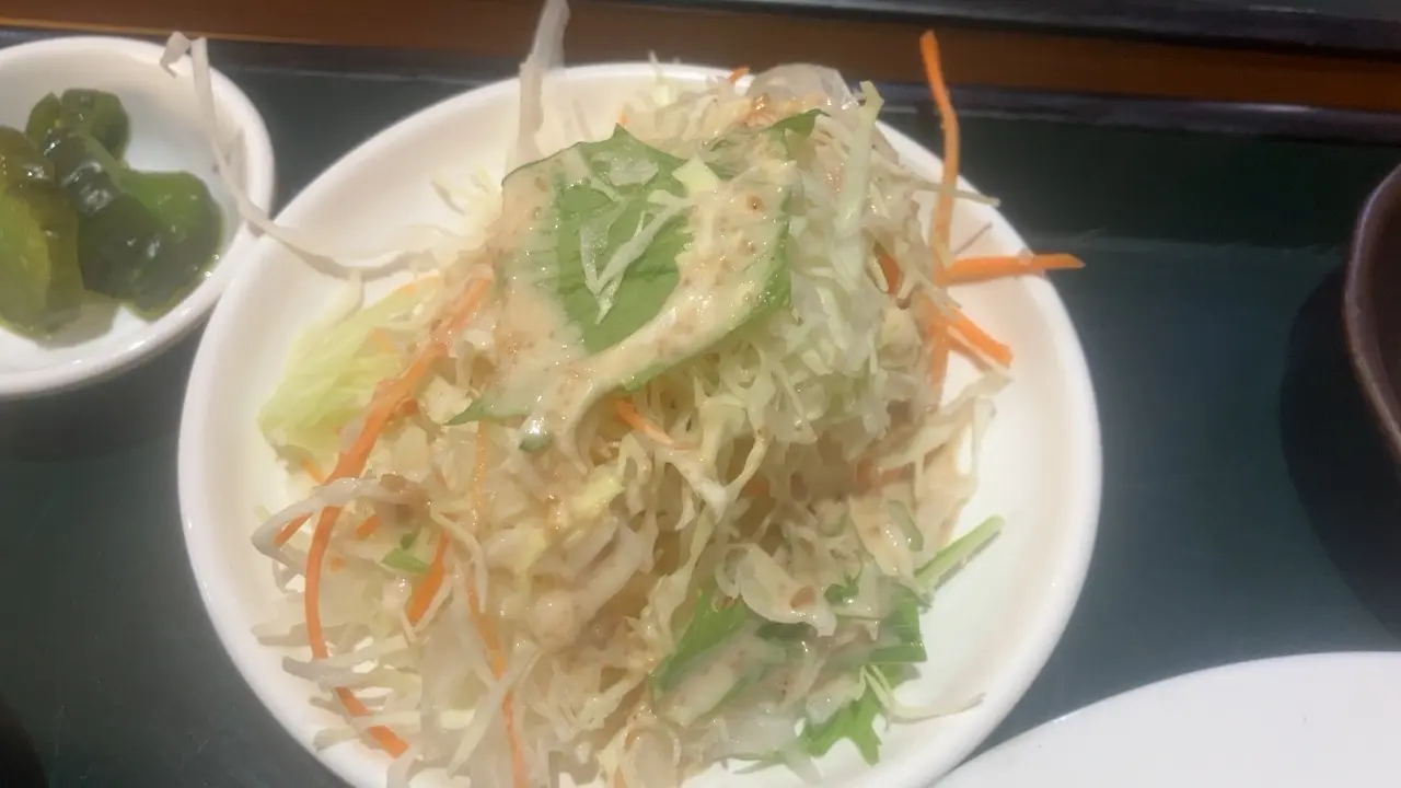 野菜サラダも付いています。ドレッシングもかかっていました。中国の人は生のものを食べる習慣があまり無いと聞きますが、このようにサラダが付いてくるのは嬉しいです。