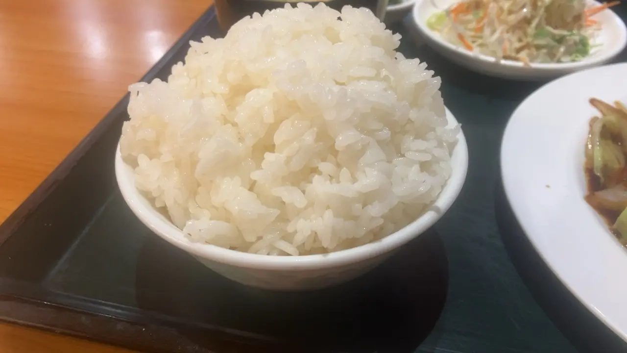 ご飯は小さめな茶碗なのですが目一杯盛り付けられています。