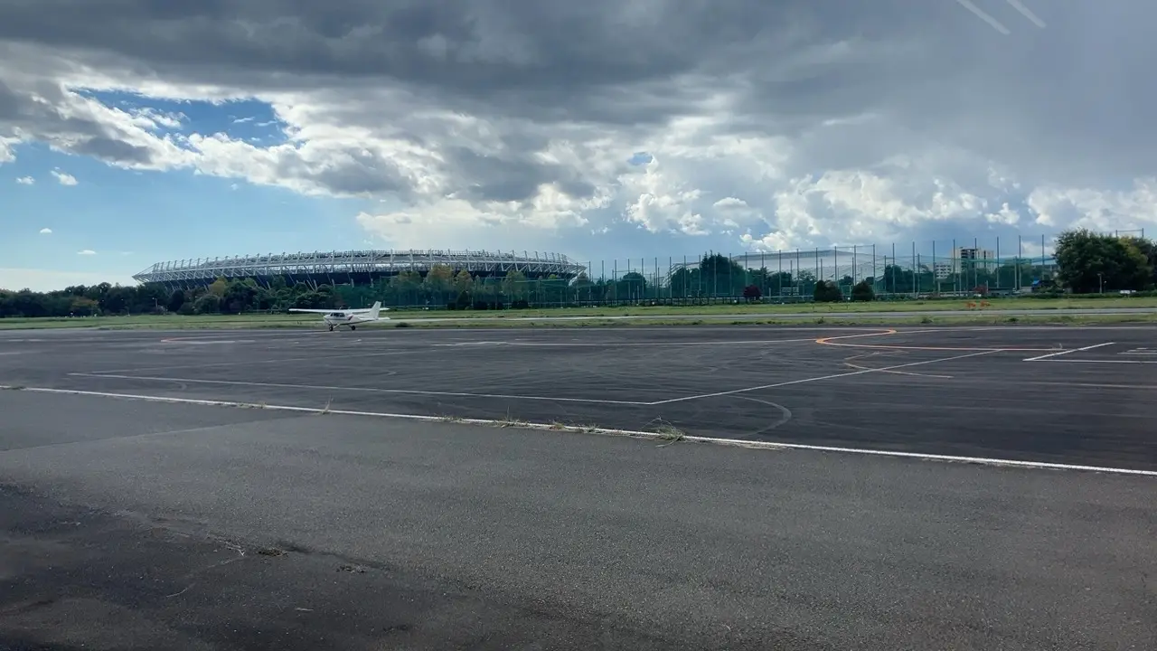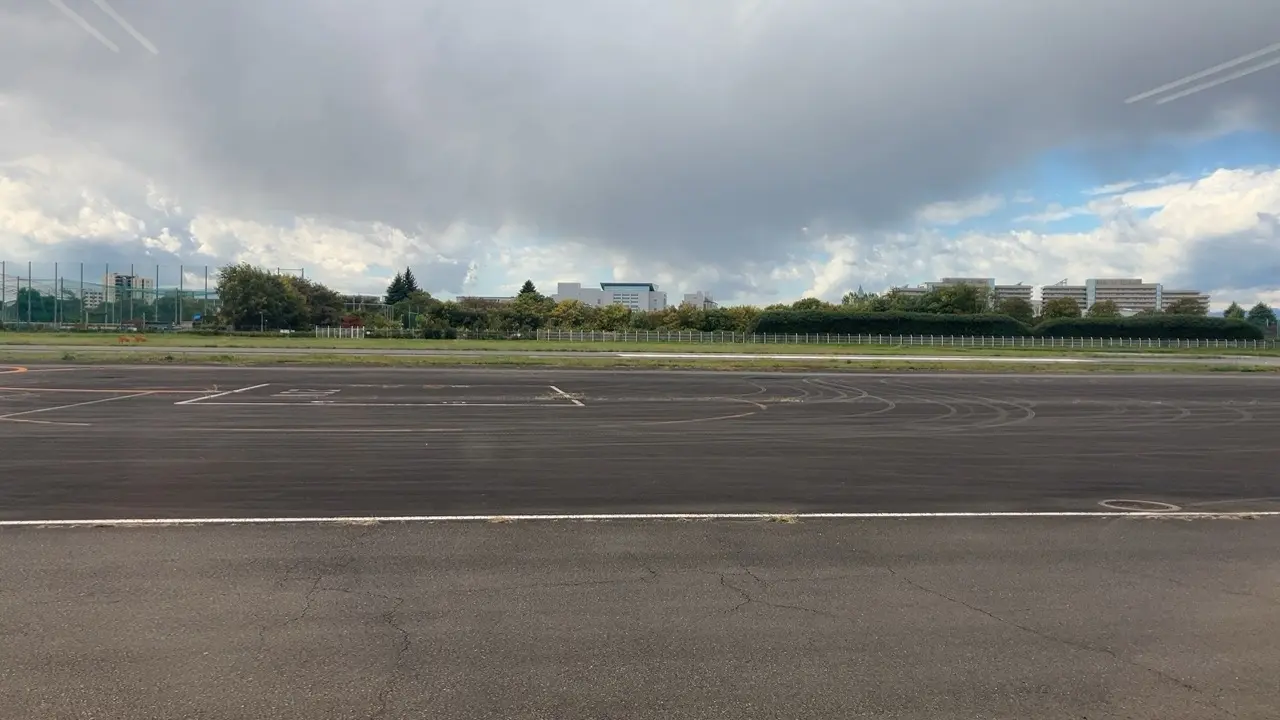 ちなみに滑走路側の席から見た景色はこんな様子になります。こちらの写真は味の素スタジアム方向です。滑走路の向こう側に味の素スタジアムが見えます。