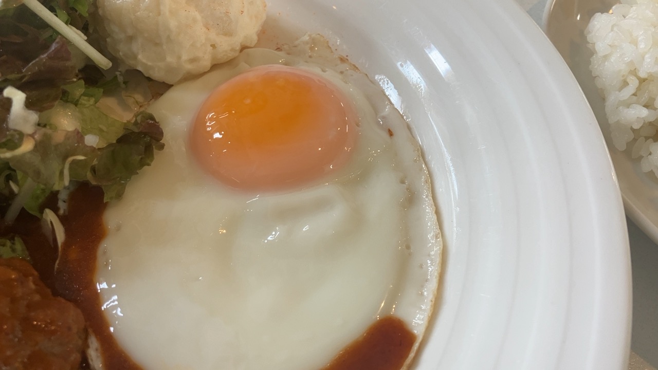 目玉焼きがのっているのも嬉しいです。黄身が半熟でちょうど良い焼き加減です。