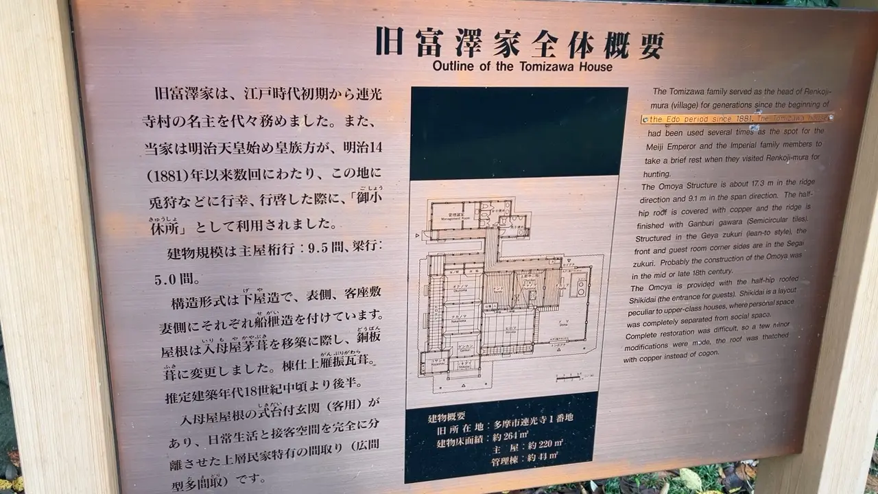こちらは旧富澤家住宅です。この公園がある地域の名士だった方の家だったそうです。1990年に連光寺1番地からから復元移築されました。