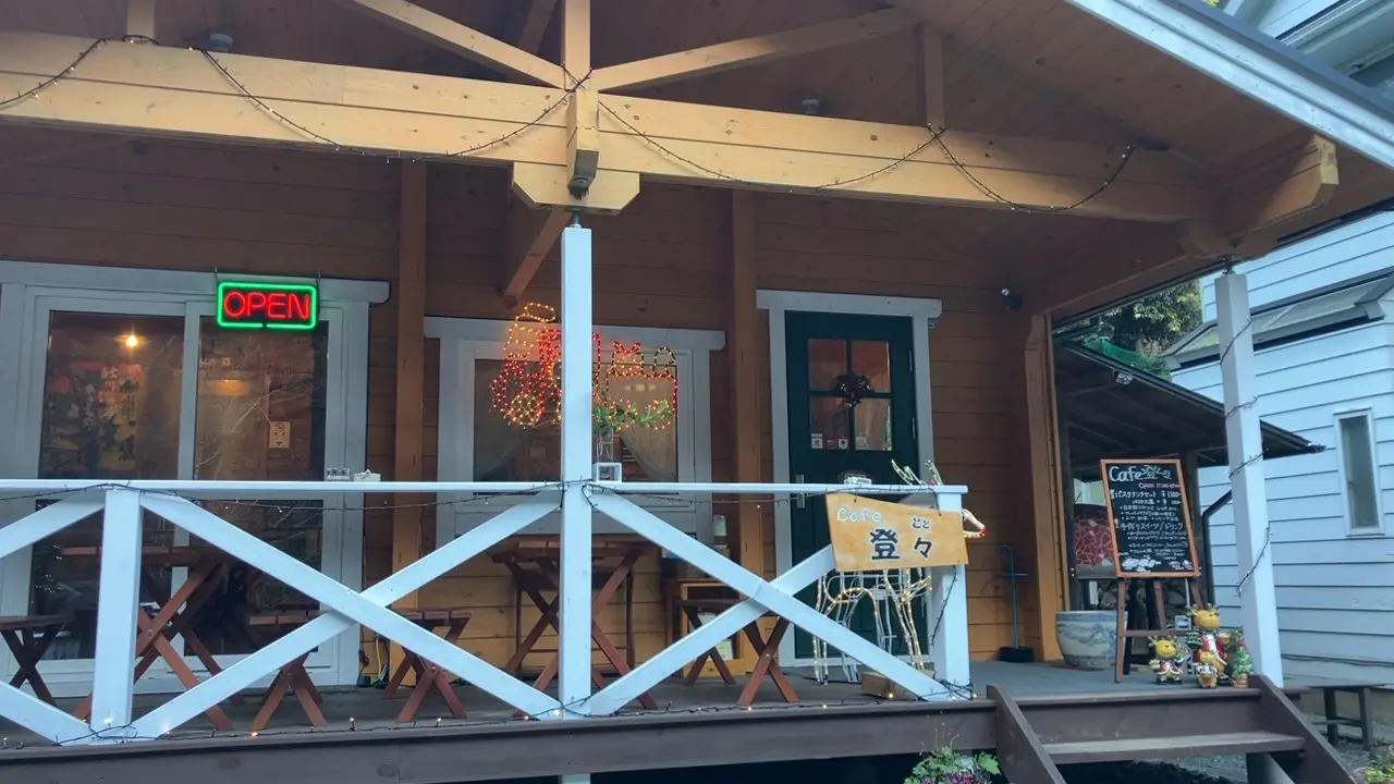 瀬音の湯で日帰り温泉を楽しんだあと、クルマで10分ほどのところにあるCafe 登々(とと)というお店に行ってみました。十里木交差点で曲がって養沢方面に行くと右手にお店がありました。お店の前には2台分の駐車スペースがあります。