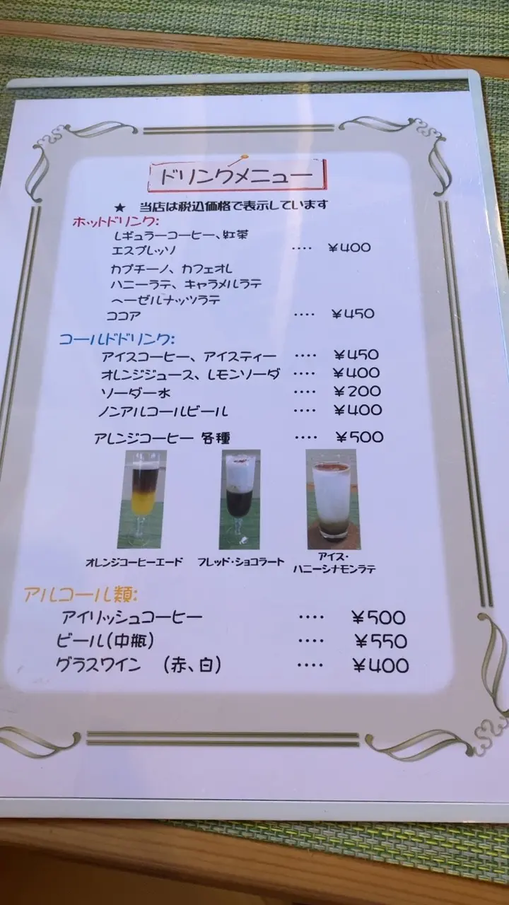 こちらはドリンクのメニューです。