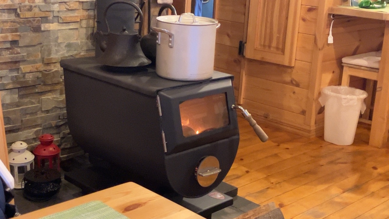 大きな薪ストーブがありました。この日は寒かったのですが、店内はとても暖かいです。