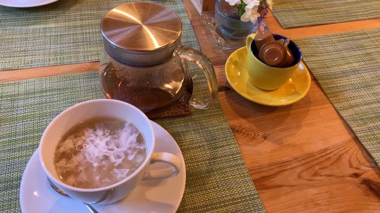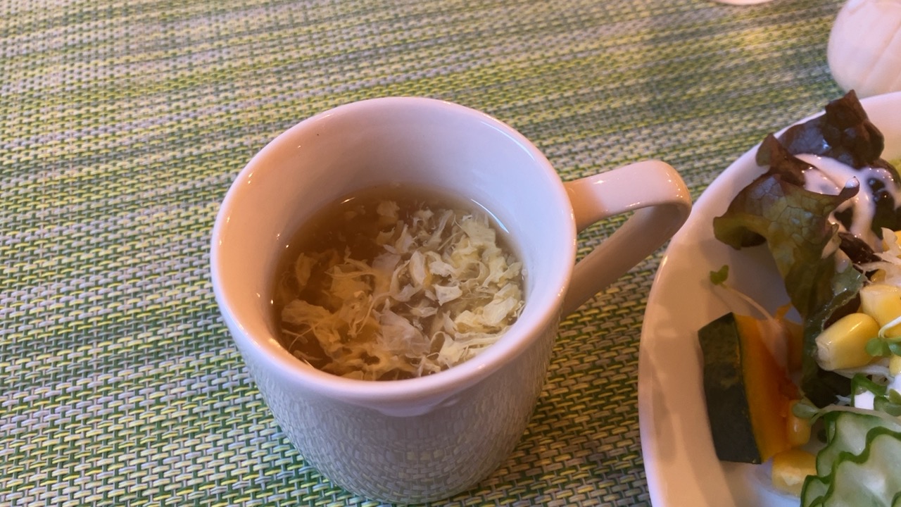 スープは玉子のスープです。熱々です。