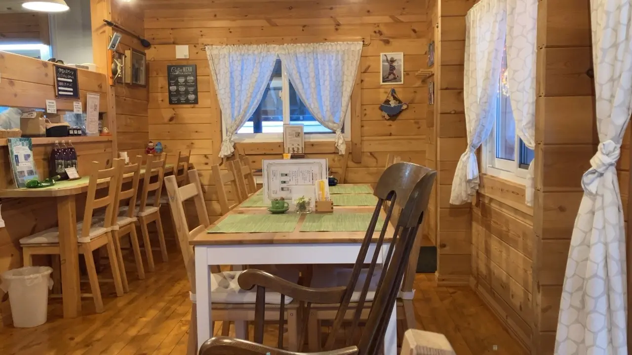 午後1時半頃にお店に着きました。店内はカウンター席が5席、2人がけのテーブル席が一つ、4人がけのテーブル席が一つ、6人がけのテーブル席が一つです。明るくカジュアル、ウッティーな内装で女性に喜ばれそうです。