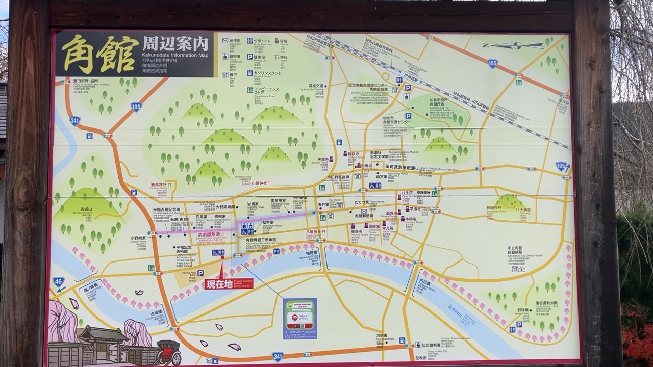 こちらは角館の広域案内図です。角館駅は右上の方になります。