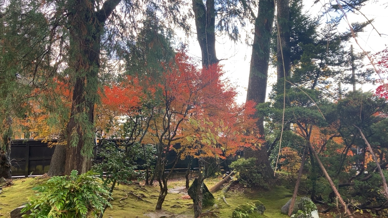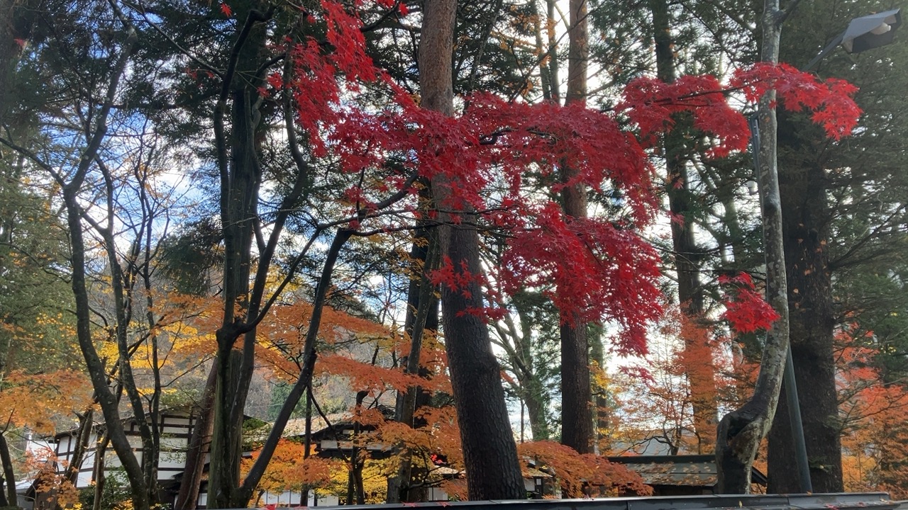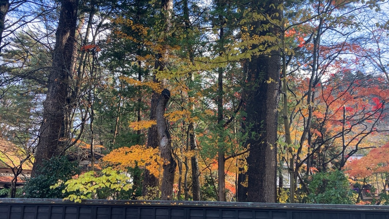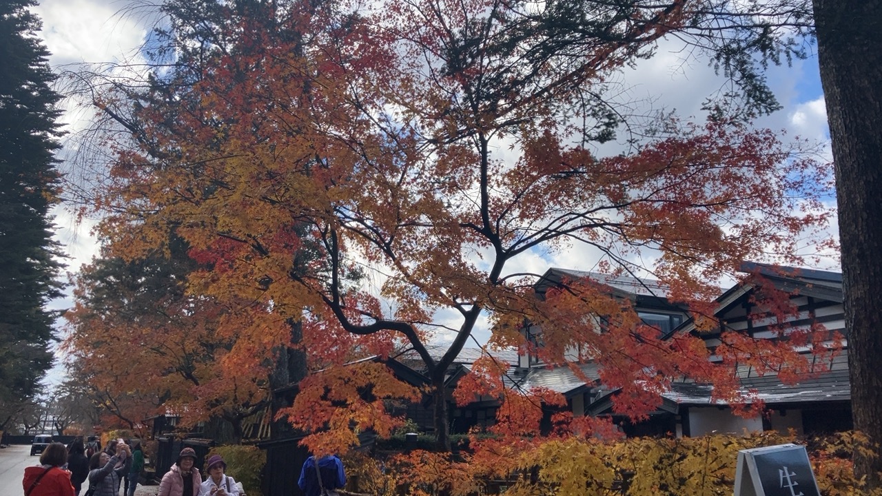 駐車場に大きな観光バスが停まっていたのですが、そのバスで来たであろう中国の方々の団体さんがグループに分かれて武家屋敷通りを散策していました。やはり、綺麗な紅葉はとても印象に残ったようで、盛んに記念写真を撮っている方が多かったです。
