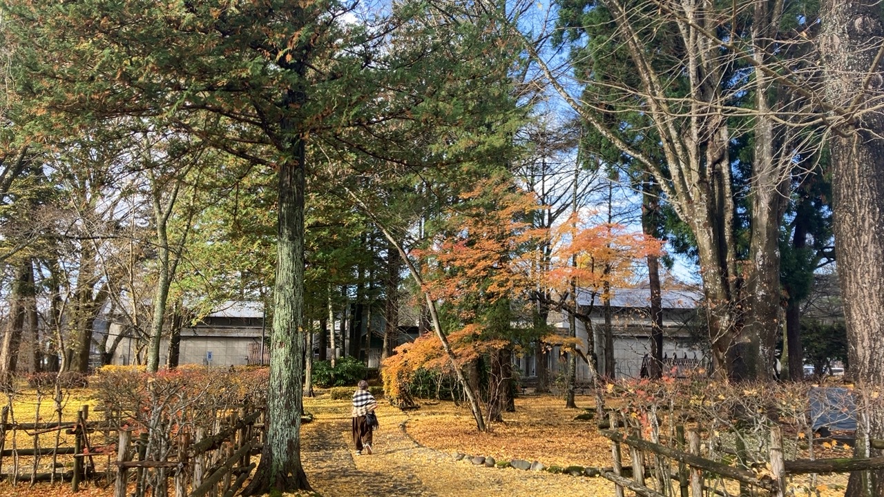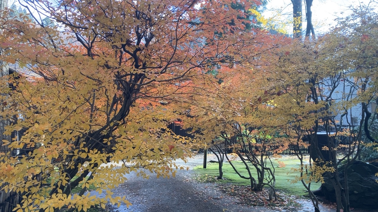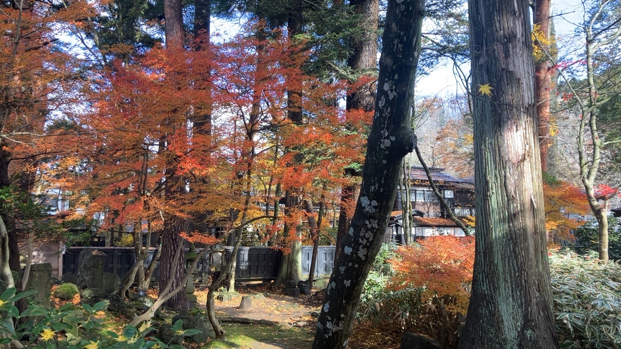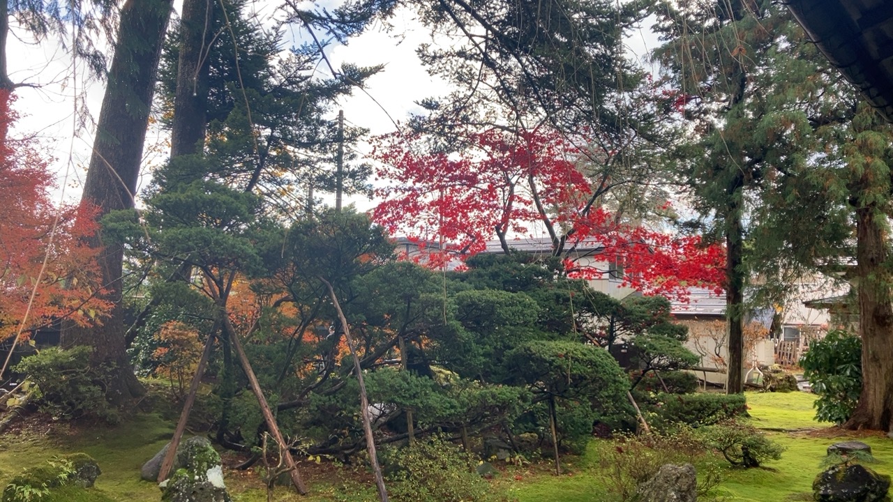 駐車場に大きな観光バスが停まっていたのですが、そのバスで来たであろう中国の方々の団体さんがグループに分かれて武家屋敷通りを散策していました。やはり、綺麗な紅葉はとても印象に残ったようで、盛んに記念写真を撮っている方が多かったです。
