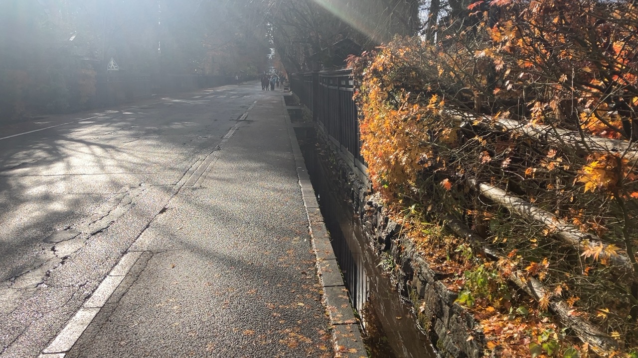 こちらは武家屋敷通りです。逆光になってしまいました。