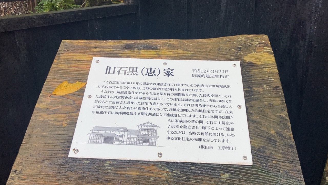 旧石黒(恵)家は、昭和10年に設計・建築されています。こちらは後ほど訪問した武家屋敷「石黒家」の分家にあたります。