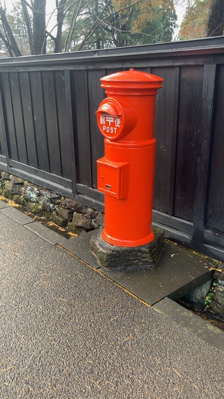 昔懐かしい円形ポストも立っていました。投入口がふさがれていないようなので、飾りではなく、現役でしょうか。