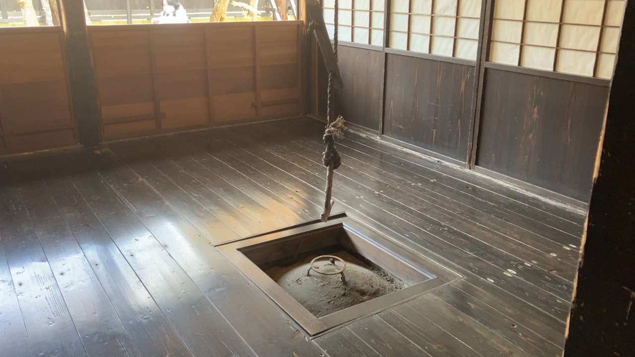 道路面にはのぞき窓を付けた黒板塀がめぐり、現存する武家住宅の中でも最も古いものです。
