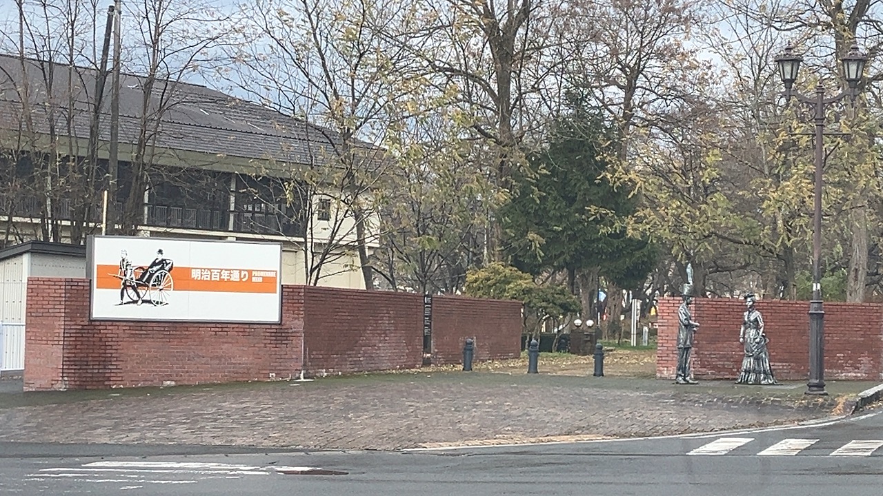 こちらが明治百年通りです。この日は三連休二日目の日曜日でしたが、小雨模様だったこともあり、観光客の数はこの日は少なかったです。