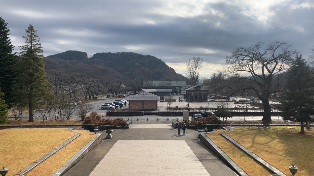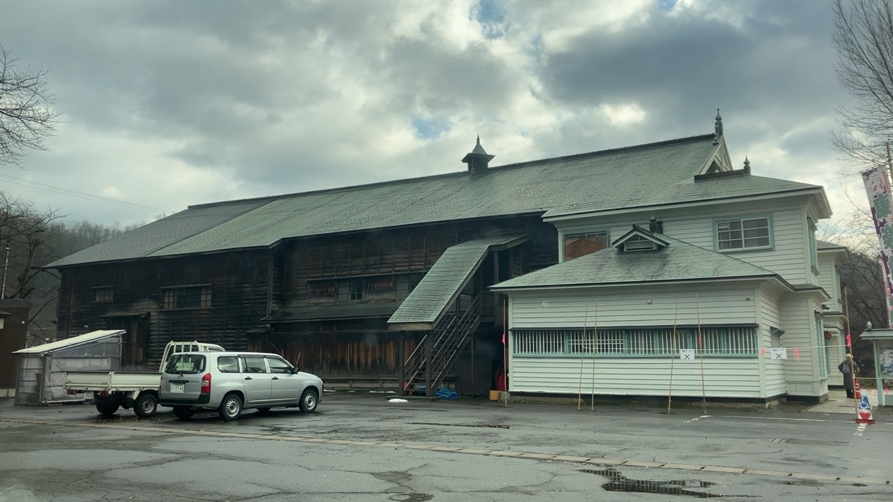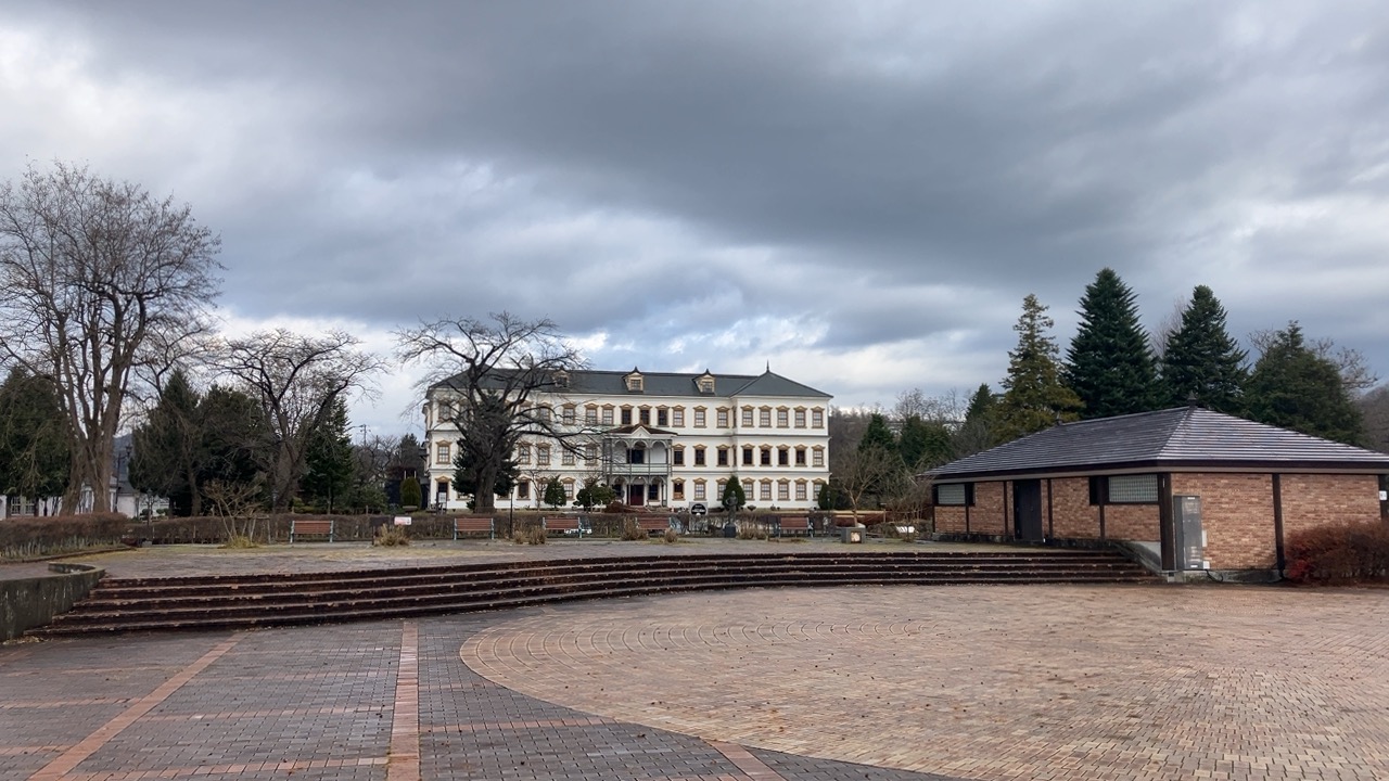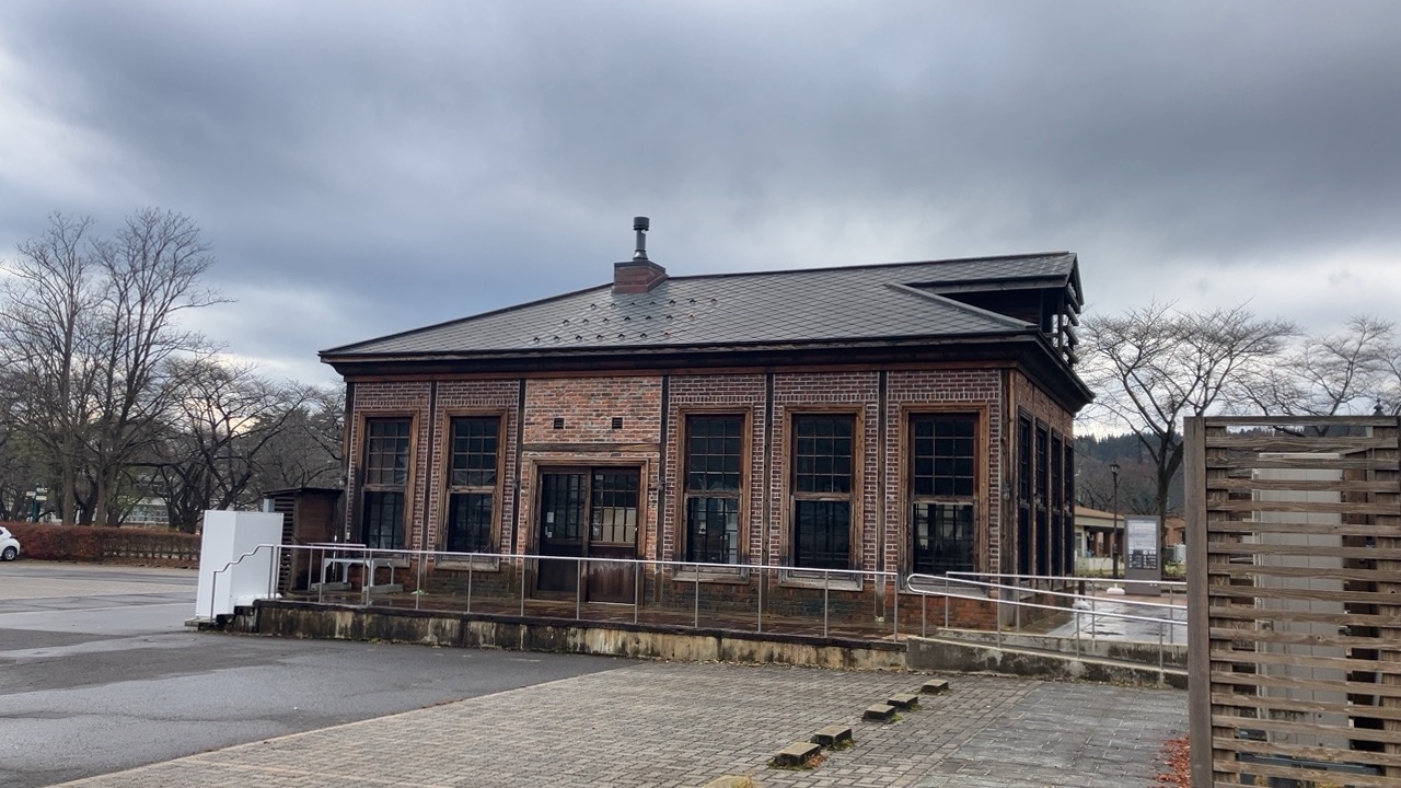 こちらの建物は1904年に建築された旧小坂鉱山工作課原動室です。こちらに移築されたあと、カフェ(赤煉瓦倶楽部)として2015年にオープンしました。この日は残念ながら冬季の休暇期間で営業していませんでした。