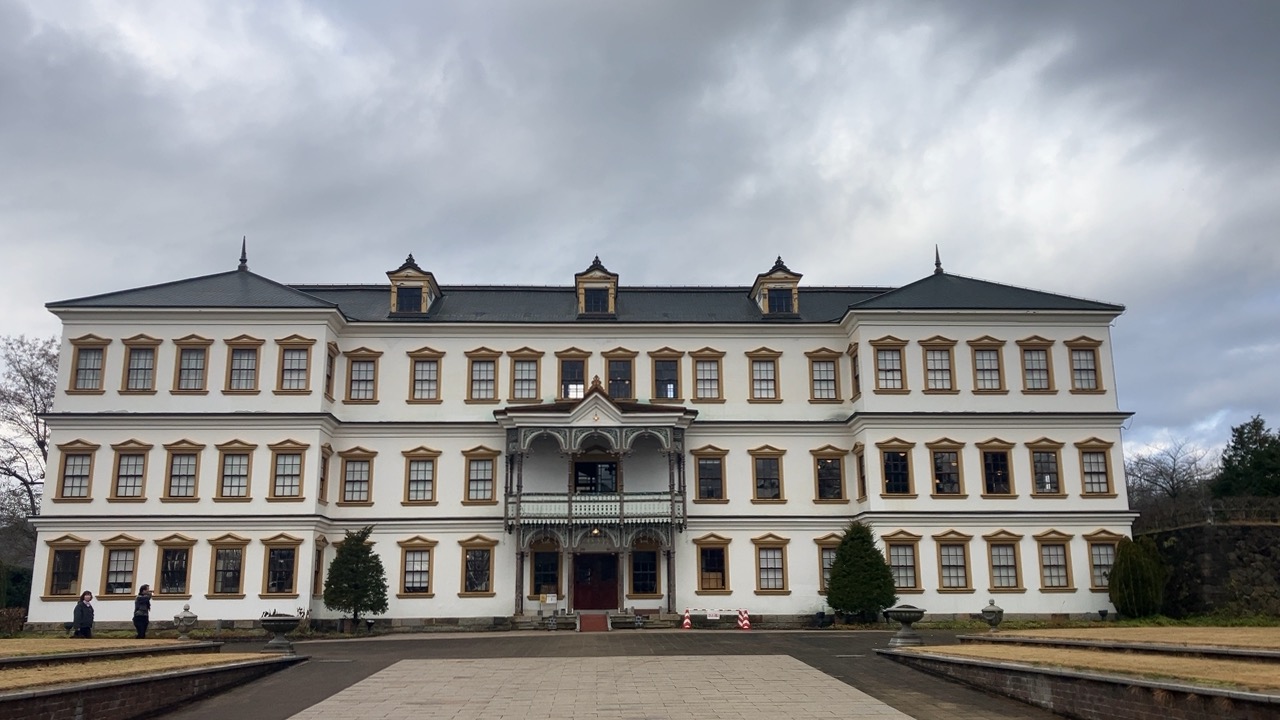 さっそく、小坂鉱山事務所に行ってみます。事務所と聞くと、平凡な建物を想像しますが、こちらの建物を見ると、まるで迎賓館のようなものを想像させます。いかに小坂という街が栄えていたかということなのでしょう。天然秋田杉で作られた3階建ての建物です。
