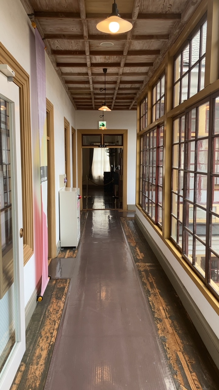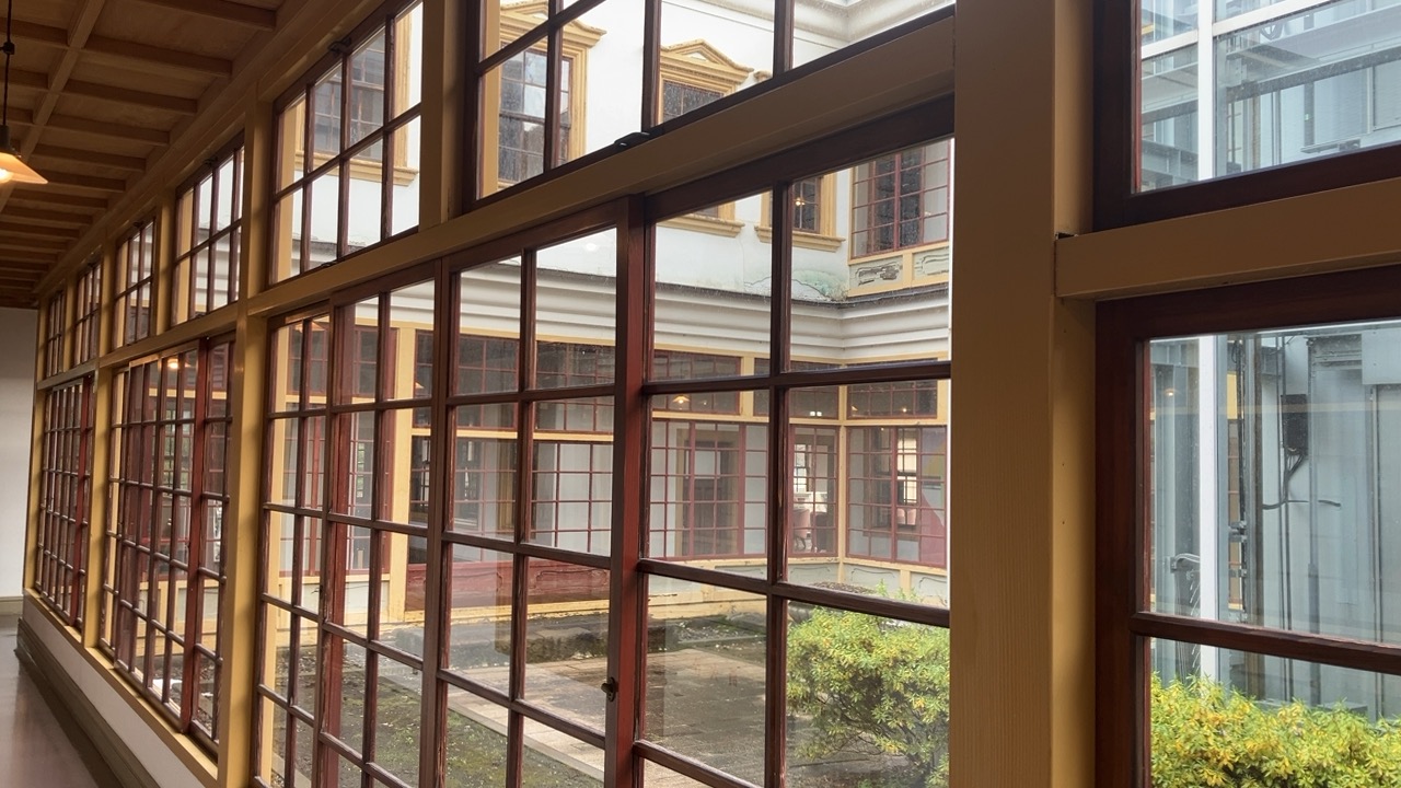 バルコニーには当時、鉱山を経営していた藤田組にあやかって藤の花が装飾に使われています。探してみてください。