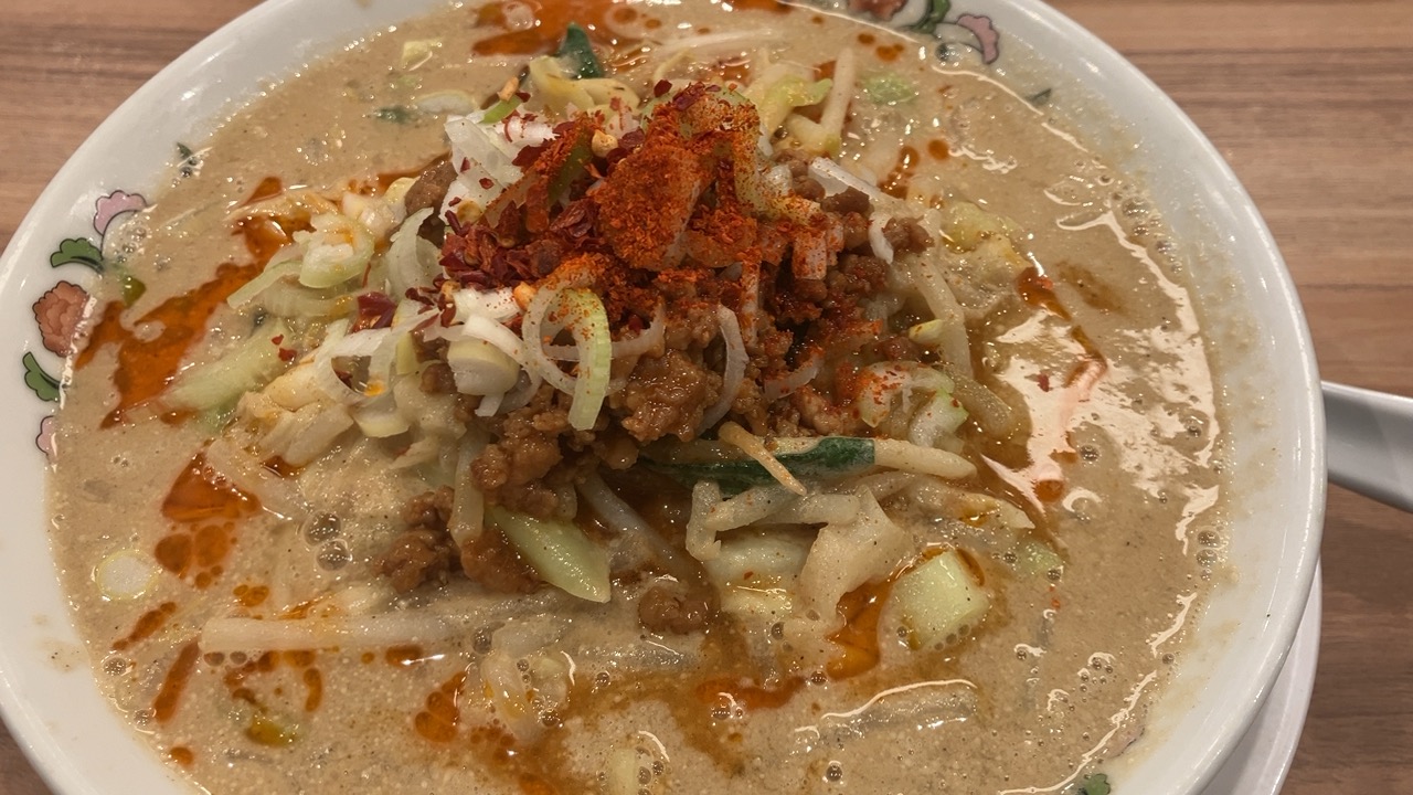 しかし、なんと言ってもこちらの担々麺、スープの胡麻の風味が際立っていて、とても美味しいです。辛味と胡麻の旨味がブレンドされて、何とも言えない奥の深い味に仕上がっていました。ついつい、塩分が身体には悪いと分かりつつ、スープを全部飲んでしまいました。